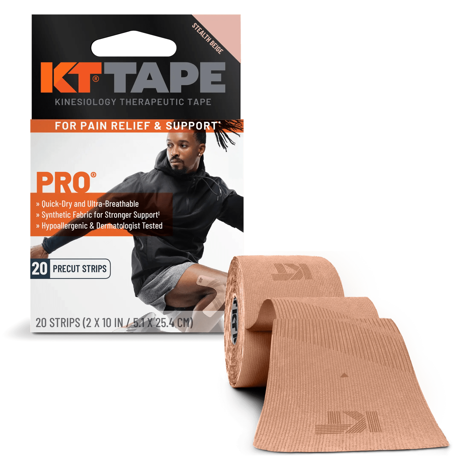 Available in a range of bold and neutral tones including beige, blue, and black, KT Pro Tape lets you match your gear or mood. Need a wider option for large body parts? Check out KT Tape Pro Wide.
