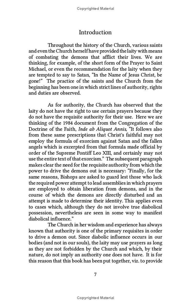 Prayers for use by the laity in waging spiritual warfare from the public domain and the Church's treasury.