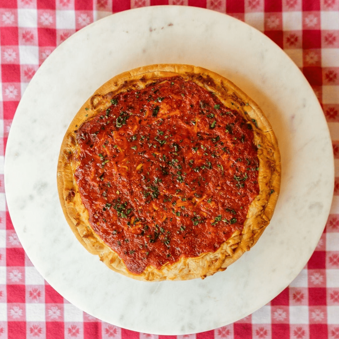 This Rupiani's® favorite is built for the pepperoni die-hards. We start with our signature thick, buttery crust—crispy outside, soft and flaky inside. Then we pile on a full pound of premium Wisconsin mozzarella and layer it thick with zesty Italian pepperoni that crisps to perfection. All of it gets finished with our bold, secret-recipe tomato sauce made in River North. The result? Molten cheese pulls and that authentic Chicago bite that keeps you coming back.