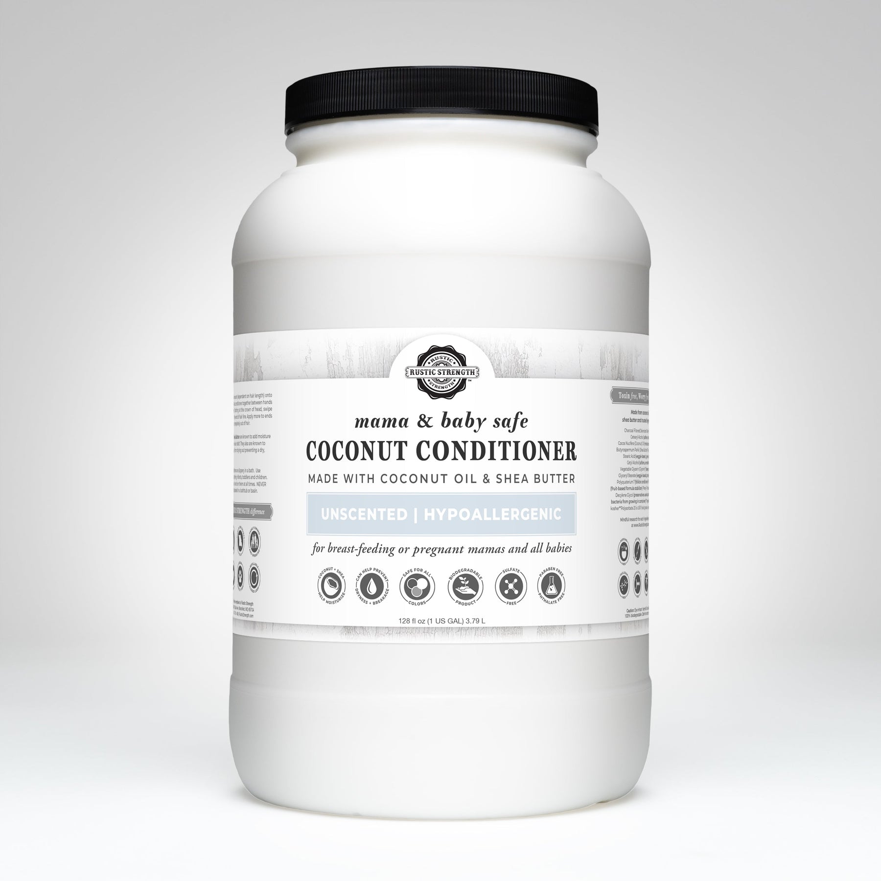 Mama + Baby Safe | Rustic Strength Coconut Conditioner is made with high-purity and concentrated active plant-based ingredients and is less likely to irritate even the most sensitive skin. It is safe for pregnant or breastfeeding mamas as well as babies when no scents are added. That's why we called this line "Mama + Baby Safe"