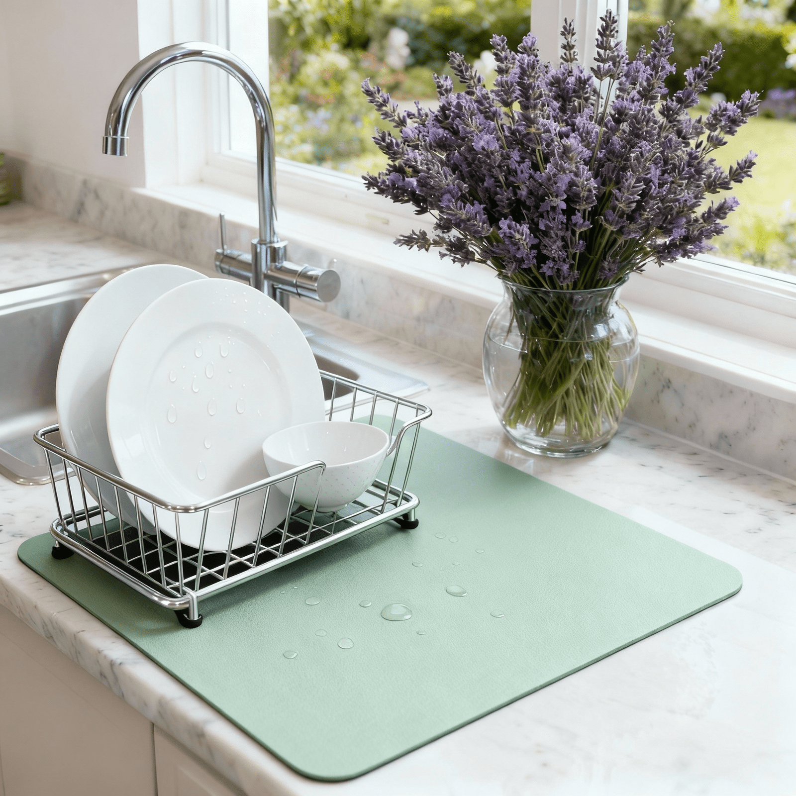 Never fret about slipping utensils or unwanted drips again with the reliable Non-Slip & Easy to Clean Dish Drying Mat. Designed with your convenience in mind, its non-slip backing firmly secures the mat, giving you confidence that your dishes will dry safely. And when it comes to cleaning, simplicity is key. A quick wash and it’s like new, making it perfect for the hustle and bustle of everyday life. Elevate your kitchen routine with a mat that cares for your space as much as you do.
