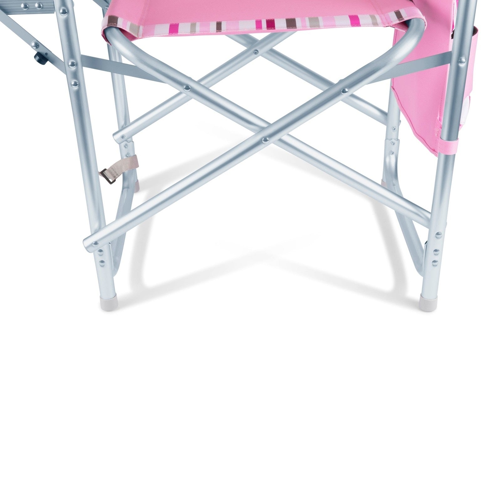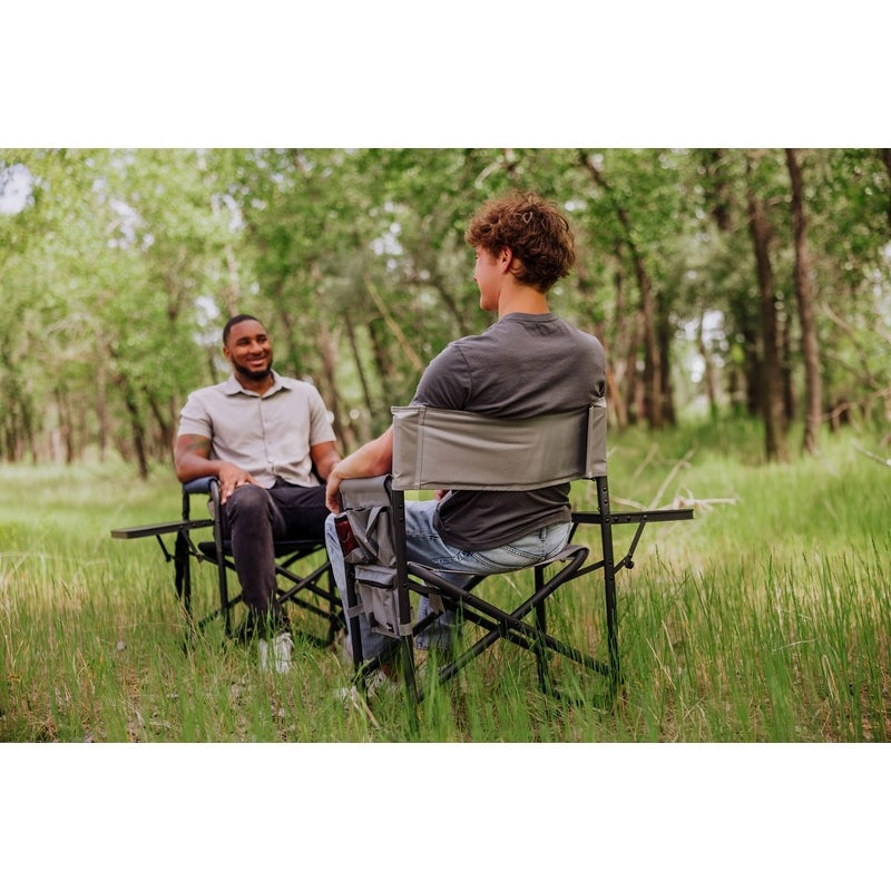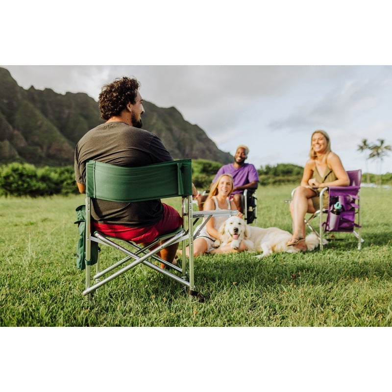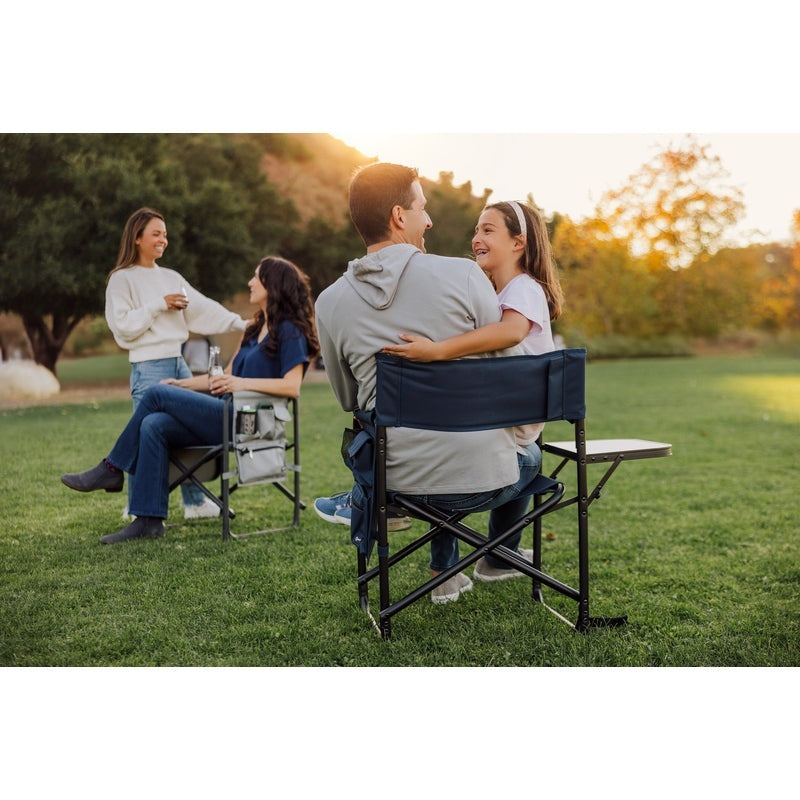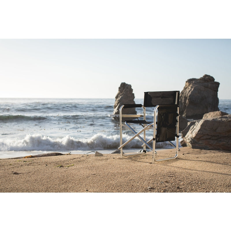 It's a beach chair for grownups and a camp chair for adults - the Sports Chair with Side Table is the last and greatest portable outdoor folding chair you’ll ever need. With classic lines and modern touches, this smart travel chair made of durable polyester canvas on a foldable and lightweight aluminum frame is the deluxe folding chair you deserve. Your seat is extra-wide (19.5") and made of durable 600D polyester, so you know it’s built to last. Features abound on this lawn and picnic-ready directors chair with padded seat and armrests, fold-out side table, hanging arm rest caddy for holding books & magazines, two insulated beverage pockets, and a variety of additional pockets for extras. Grab-and-go with the underseat carrying handles or use the adjustable, detachable shoulder strap for longer treks to the campsite, the beach, or across the stadium. This outdoor camping chair is ideal for camping, picnicking, concerts in the park, or watching your favorite sport comfortably from the sidelines. Your companions may be melting in the summer heat, but you've got shade for days with the Oniva Beach Umbrella (sold separately) attached to the built-in umbrella loop. But there’s no need to gloat - this outdoor camping chair does all the bragging for you without saying a word.