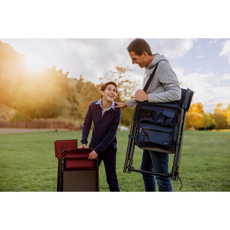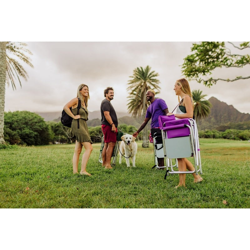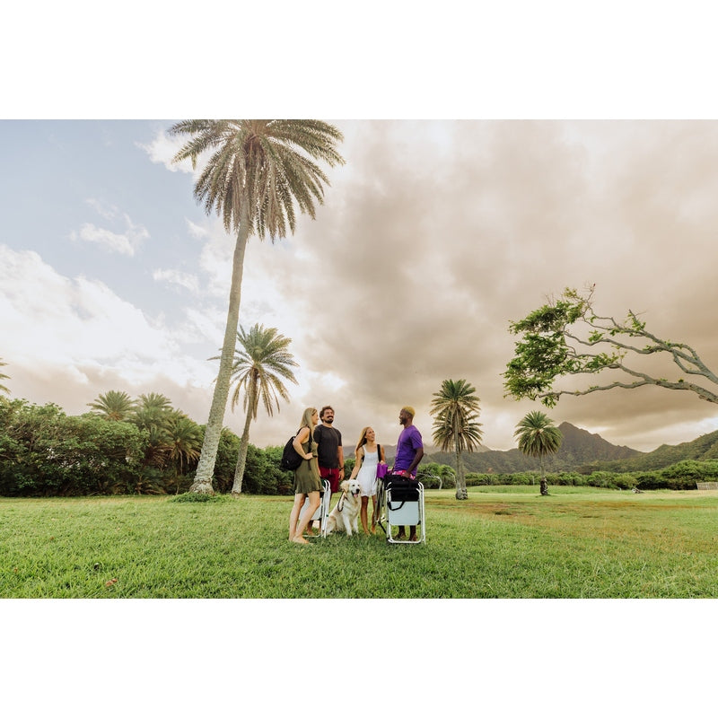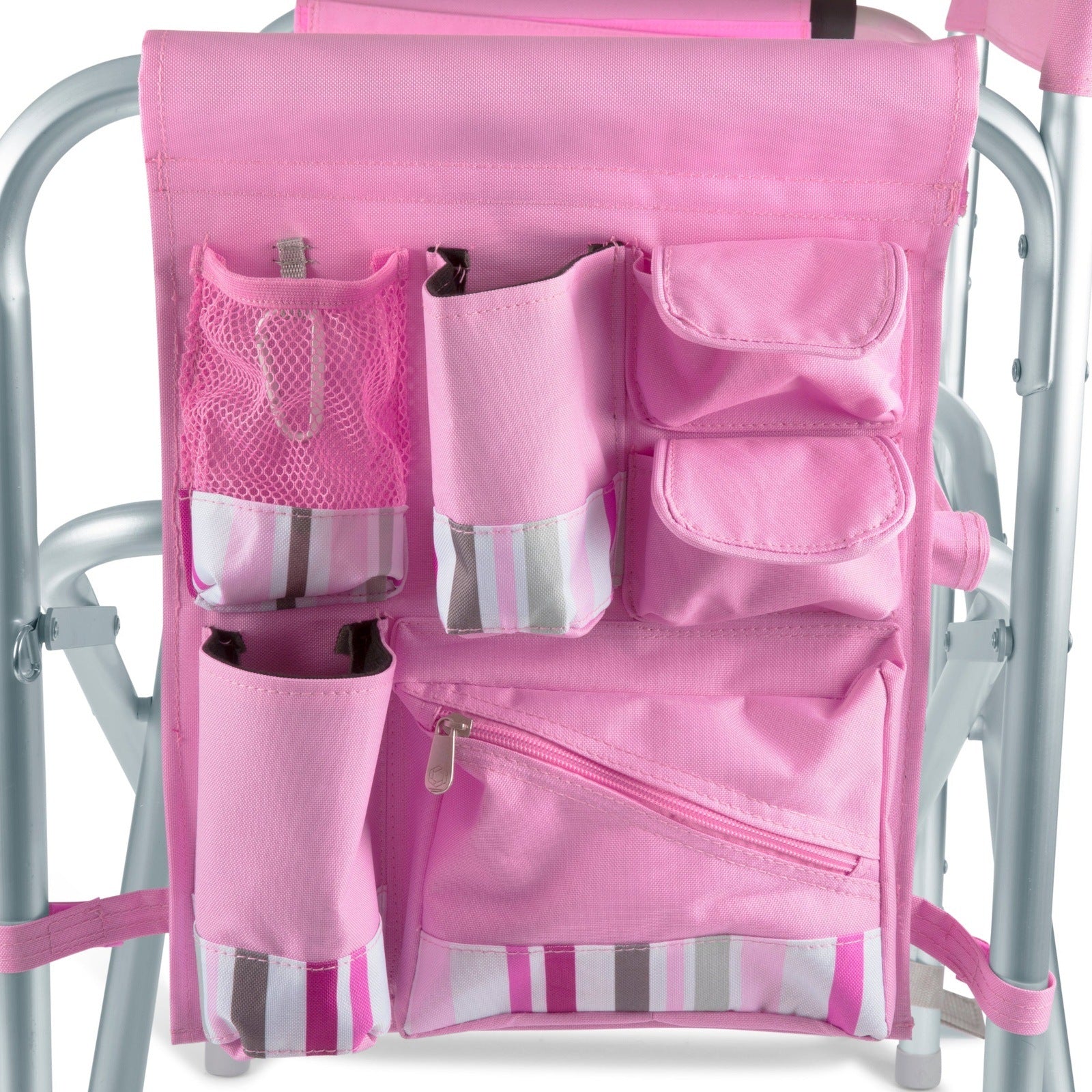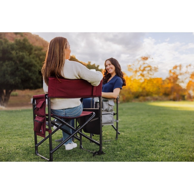 It's a beach chair for grownups and a camp chair for adults - the Sports Chair with Side Table is the last and greatest portable outdoor folding chair you’ll ever need. With classic lines and modern touches, this smart travel chair made of durable polyester canvas on a foldable and lightweight aluminum frame is the deluxe folding chair you deserve. Your seat is extra-wide (19.5") and made of durable 600D polyester, so you know it’s built to last. Features abound on this lawn and picnic-ready directors chair with padded seat and armrests, fold-out side table, hanging arm rest caddy for holding books & magazines, two insulated beverage pockets, and a variety of additional pockets for extras. Grab-and-go with the underseat carrying handles or use the adjustable, detachable shoulder strap for longer treks to the campsite, the beach, or across the stadium. This outdoor camping chair is ideal for camping, picnicking, concerts in the park, or watching your favorite sport comfortably from the sidelines. Your companions may be melting in the summer heat, but you've got shade for days with the Oniva Beach Umbrella (sold separately) attached to the built-in umbrella loop. But there’s no need to gloat - this outdoor camping chair does all the bragging for you without saying a word.