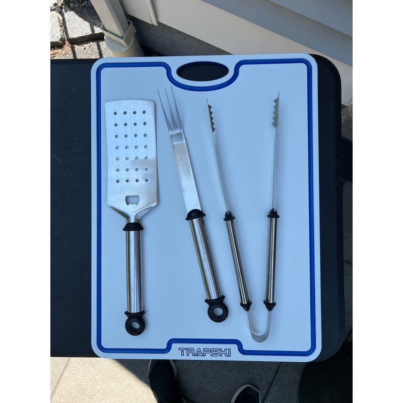 Upgrade your kitchen prep with the TRAPSKI HDPE Cutting Board – built for serious cooks who demand durability, safety, and easy maintenance. Made from high-density polyethylene, our cutting board is knife-friendly, stain-resistant, and fully dishwasher safe. The non-porous surface prevents bacteria buildup while the built-in juice grooves help keep your counters clean. Available in professional Natural white and white blue accented trim, it's the perfect fit for your home kitchen, outdoor prep area, or commercial kitchen, boat, RV, camping or cabin get-away.