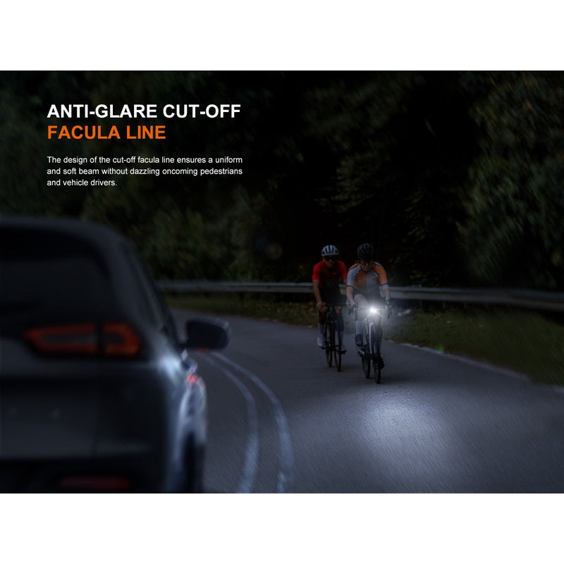 The Fenix BC22R High-Performance Road Bike Light delivers a powerful 1400-lumen output with a broad 512-foot flood beam, ensuring clear visibility while its anti-glare cut-off line protects pedestrians and oncoming traffic for your safety and theirs. Compact and aerodynamically designed, it mounts easily on the top or bottom of handlebars with a quick-release system for effortless use.