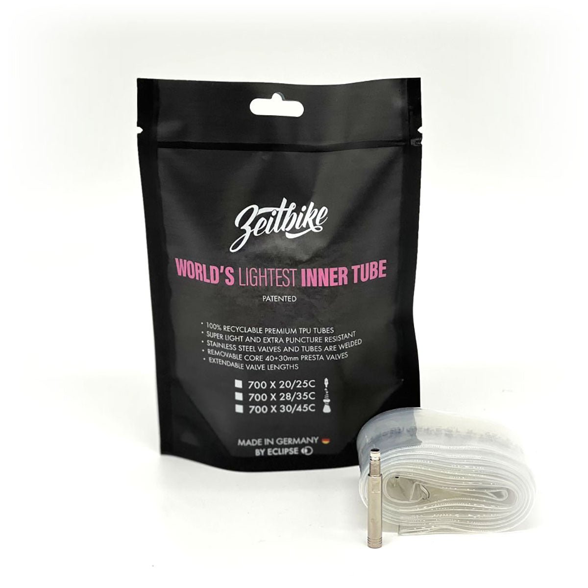 ZEITBIKE brings you the world's lightest and long lasting bicycle tire inner tubes by Eclipse. These tubes are perfect for cyclists who want the best of both worlds - a super lightweight tube that's stronger and long lasting.
