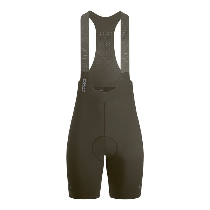 Go farther thanks to the professional performance of the Women's Seamless Olive Green Pro cycling bib shorts. The professional grade Italian padded Chamois designed for rides of 8+ hours will be a joy to sit on, while the ultra-lightweight 100% European fabrics, with quick drying, UV protection and moisture transport characteristics will keep you feeling good and looking like a PRO.