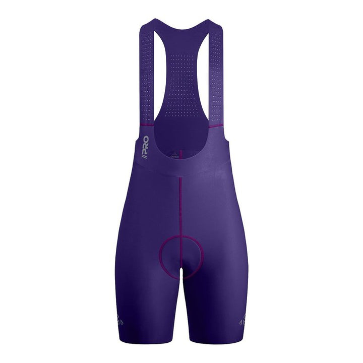 Go farther thanks to the professional performance of the Women's Seamless Purple Pro cycling bib shorts. The professional grade Italian padded Chamois designed for rides of 8+ hours will be a joy to sit on, while the ultra-lightweight 100% European fabrics, with quick drying, UV protection and moisture transport characteristics will keep you feeling good and looking like a PRO.