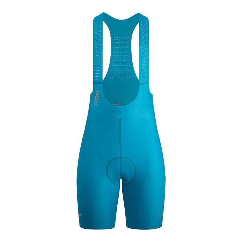 Go farther thanks to the professional performance of the Women's Seamless Turquoise Pro cycling bib shorts. The professional grade Italian padded Chamois designed for rides of 8+ hours will be a joy to sit on, while the ultra-lightweight 100% European fabrics, with quick drying, UV protection and moisture transport characteristics will keep you feeling good and looking like a PRO.