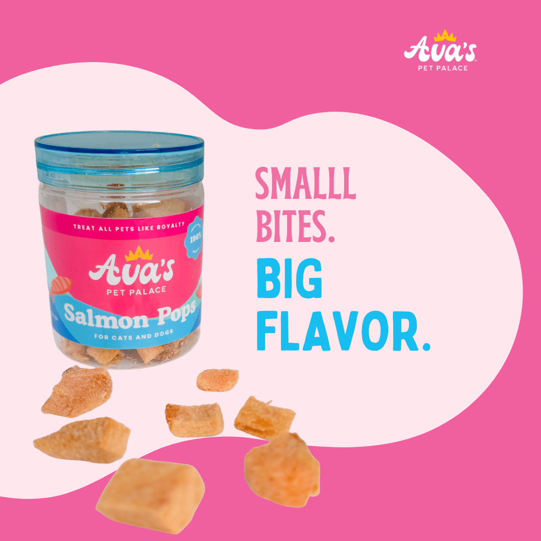 Salmon Pops are a rich, irresistible single-ingredient treat made from 100% freeze-dried salmon with the skin on. Packed with protein, omega fatty acids, and natural nutrients, these crunchy bites support skin, coat, heart, and overall wellness. With a texture cats and dogs love and a flavor that keeps them coming back, Salmon Pops make every snack time feel special.