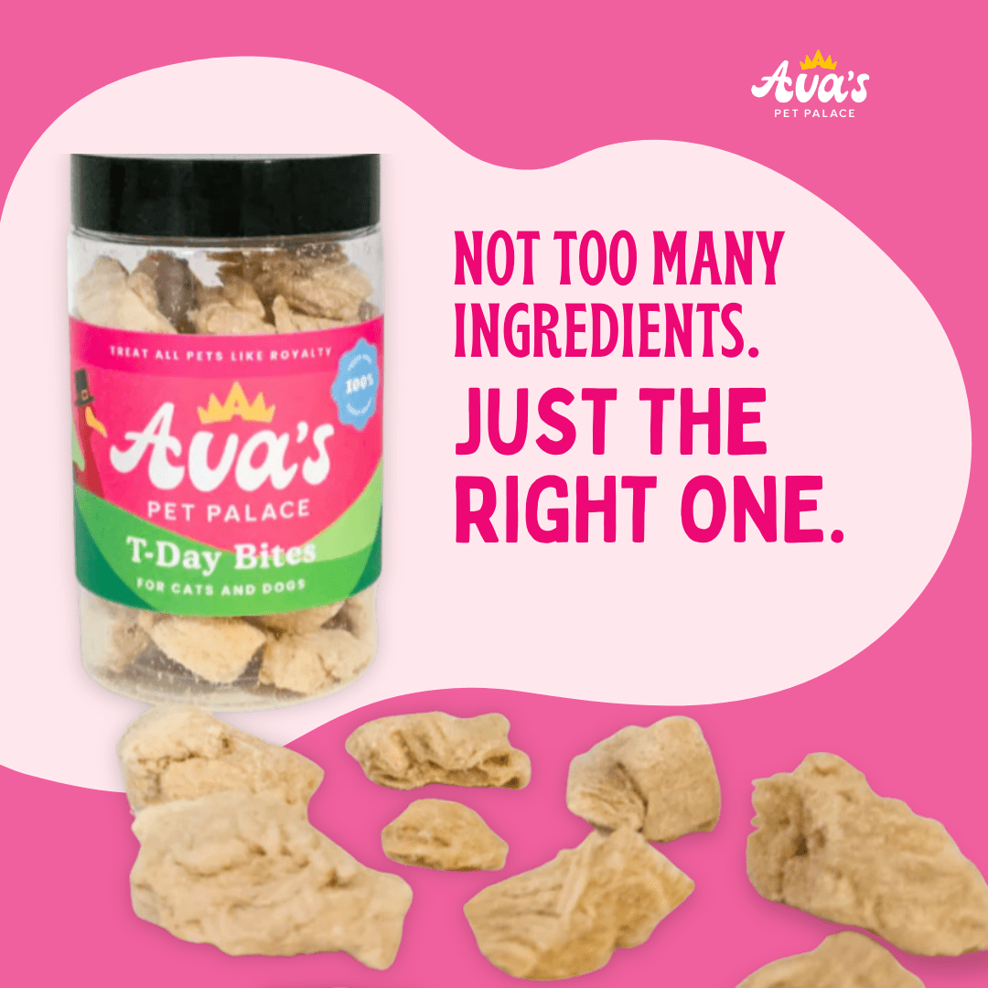 Every day is a celebration with T-Day Bites! Made with 100% freeze-dried turkey breast, these high-protein, low-fat treats are the perfect pick for dogs and cats who crave meaty flavor without the extras. With just one ingredient and nothing to hide, they’re gentle on sensitive stomachs, ideal for training, and totally irresistible.