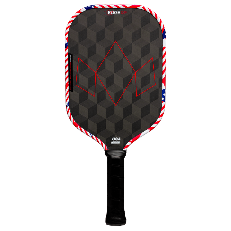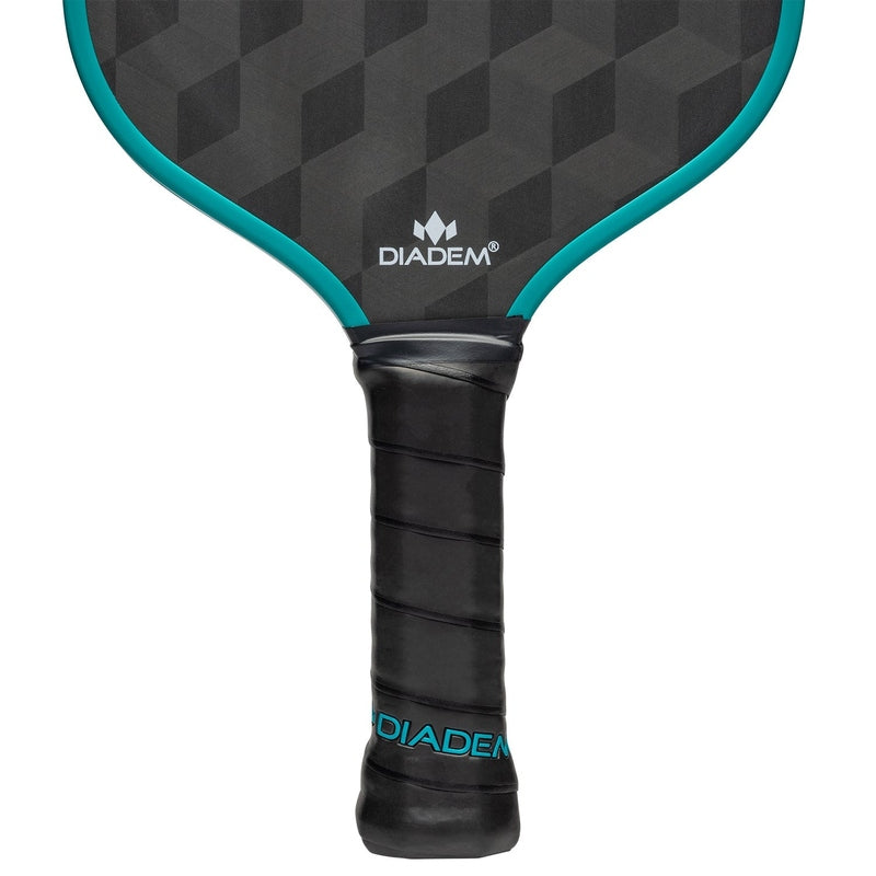 The preeminent technology of the Edge 18k paddle features its revolutionary new surface material. Utilizing state-of-the-art 3D 18k carbon fiber, this paddle uses the unique triaxial weave, incorporating three interwoven yarns at 60-degree angles, setting the stage for an unrivaled playing experience. Unlike traditional unidirectional raw carbon fiber paddles, the Diadem Edge 18k paddle's advanced construction amplifies spin potential at every angle of contact, giving you a competitive edge that's simply unmatched - no matter what shot you hit.