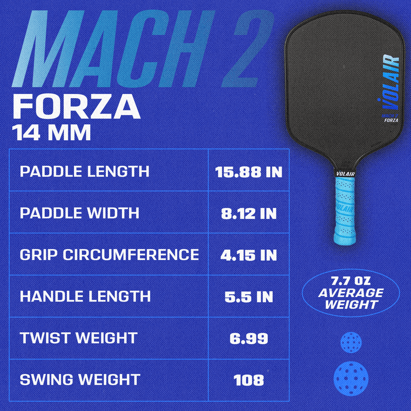 Discover the exceptional performance of the Volair Mach 2 FORZA. Unleash a new level of play with the wider design that eliminates frustrating mishits and elevates your confidence. USAPA Approved!