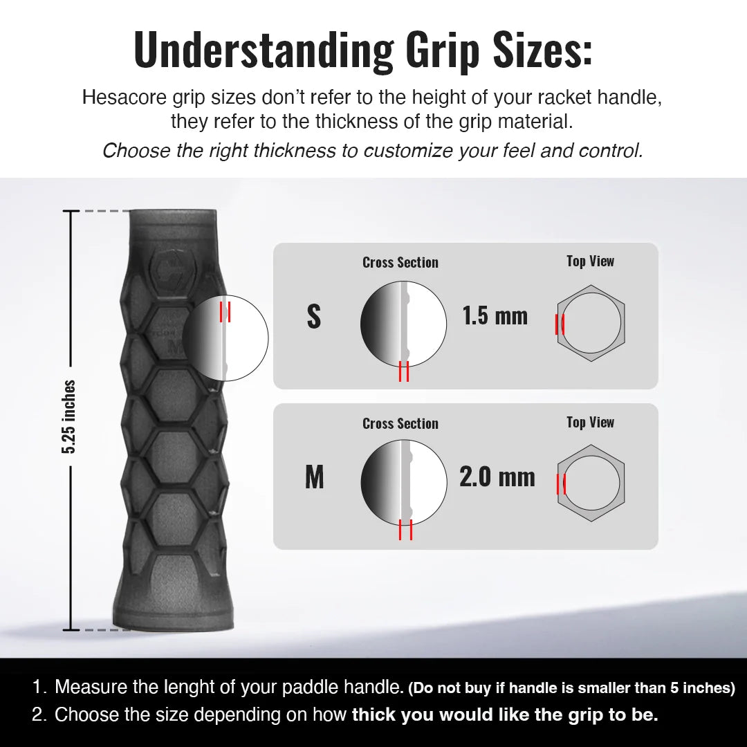 Hesacore Tour Grip Carbon is the new grip designed with carbon filaments that make the handle stiff for any hand, decreasing the “handle” stress. It is also anti-vibration, anti-sweat and anti-humidity. The best way to increase your performance with the greatest possible comfort.