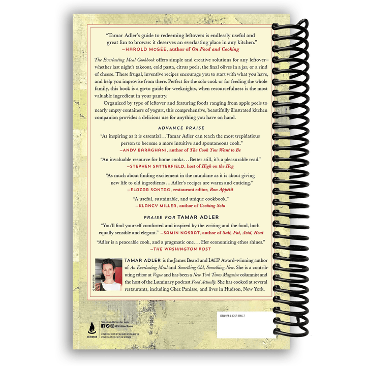 Here, in The Everlasting Meal Cookbook, she offers more than 1,500 easy and creative ideas to use up nearly every kind of leftover—and helpfully explains how long each recipe takes. Now you can easily transform a leftover burrito into a lunch of fried rice, or stale breakfast donuts into bread pudding. These inspiring and tasty recipes don’t require any precise measurements, making this cookbook a go-to resource for when your kitchen seems full of meal endings with no clear meal beginnings in sight.