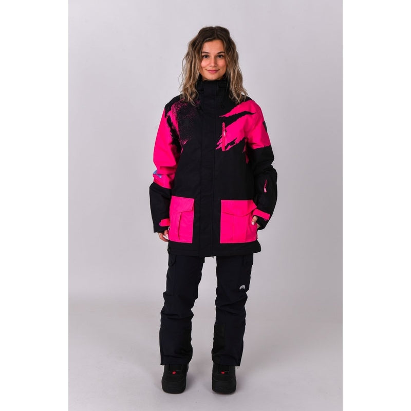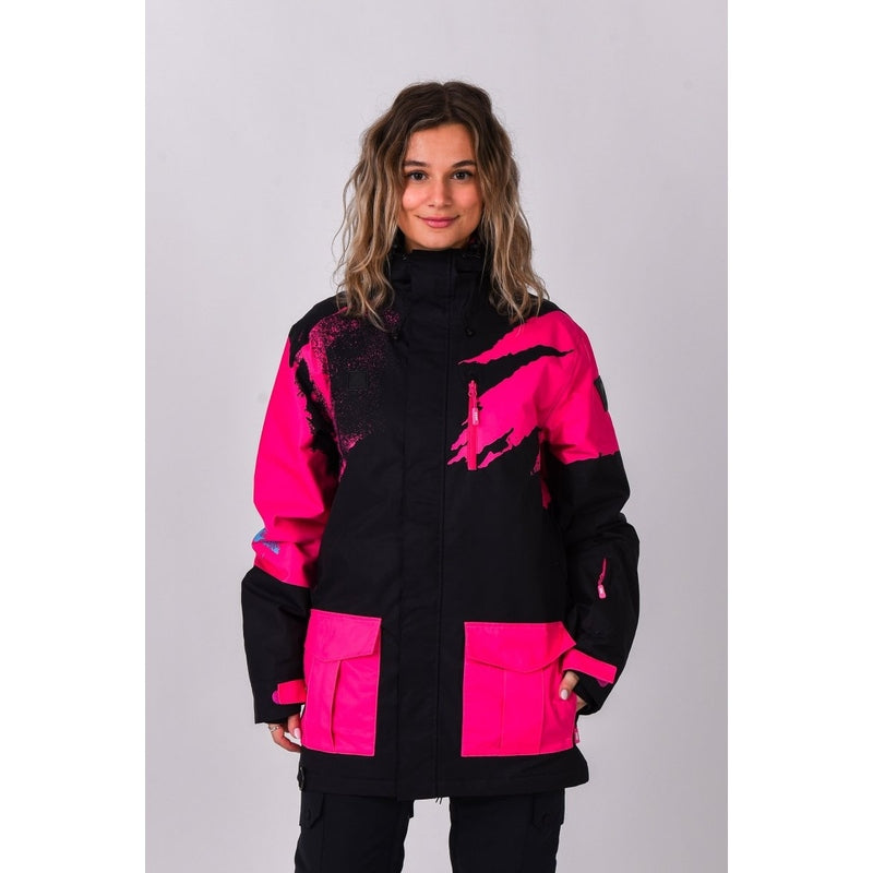 OOSC’s Afterparty is inspired by 90s neon sportswear, with some dark tones combined with spray paint neon colour pops & faded out logos. The Afterparty offers riders high a performing jacket at a great price point. Its great in all conditions & looks vibrant whilst understated in snow or sunshine!