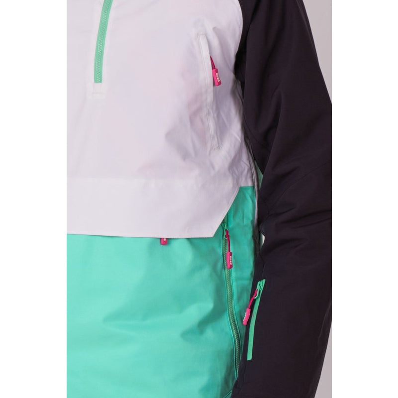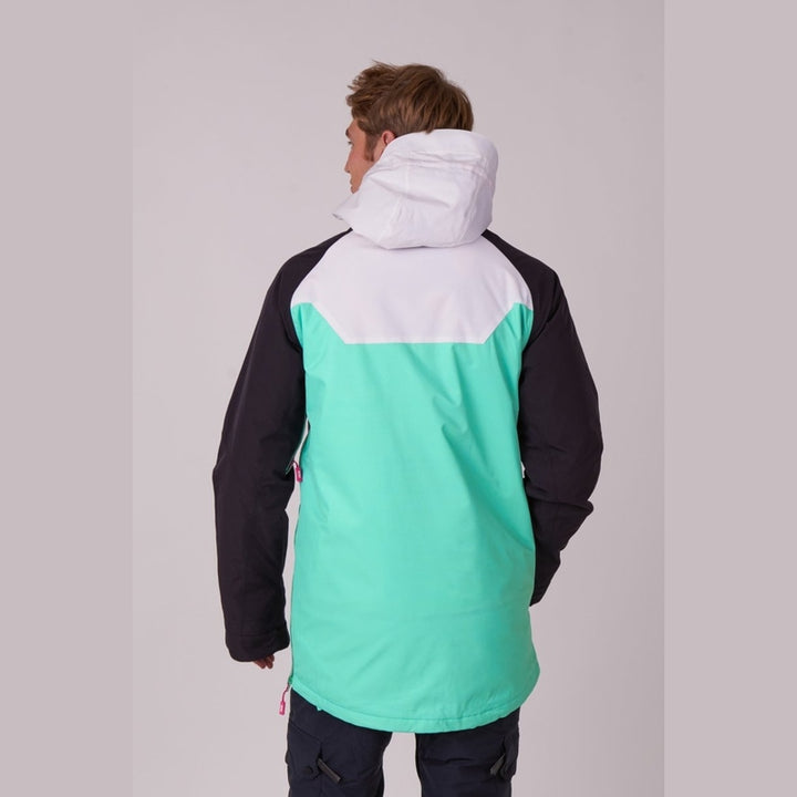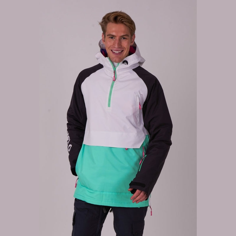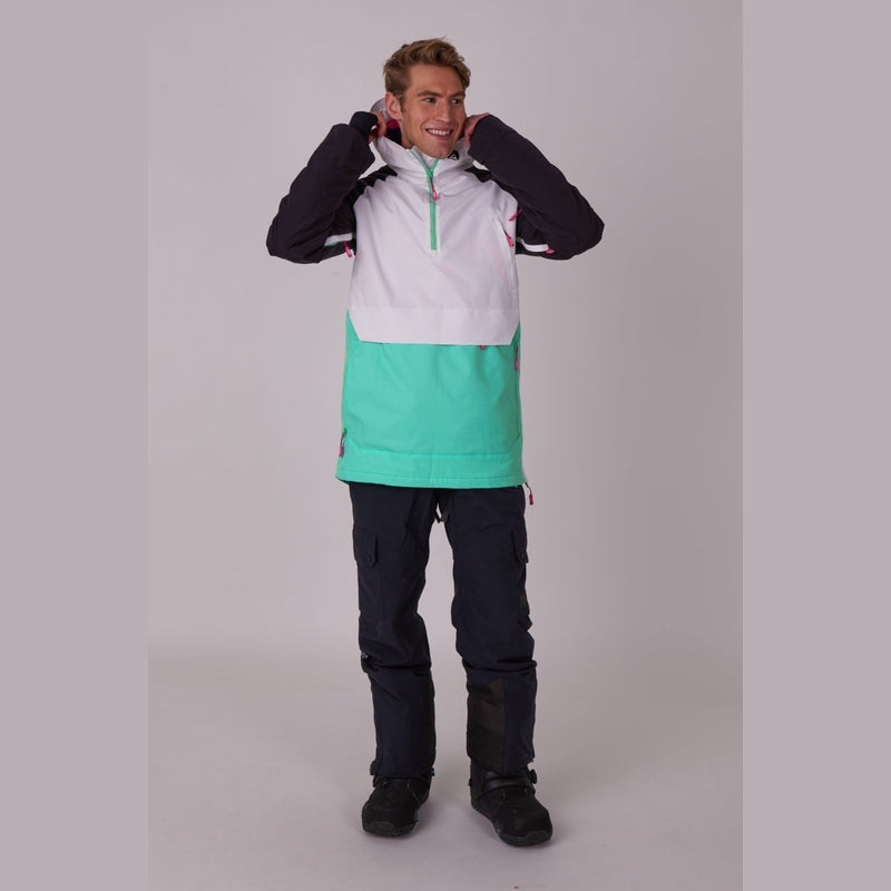 The OOSC Snow Park Overhead Jacket is sick whether you're hitting rails, hucking kickers, dropping cliffs or just at après; it's colour blocked with a helmet compatible hood, as well as a massive pouch and three other external pockets......
