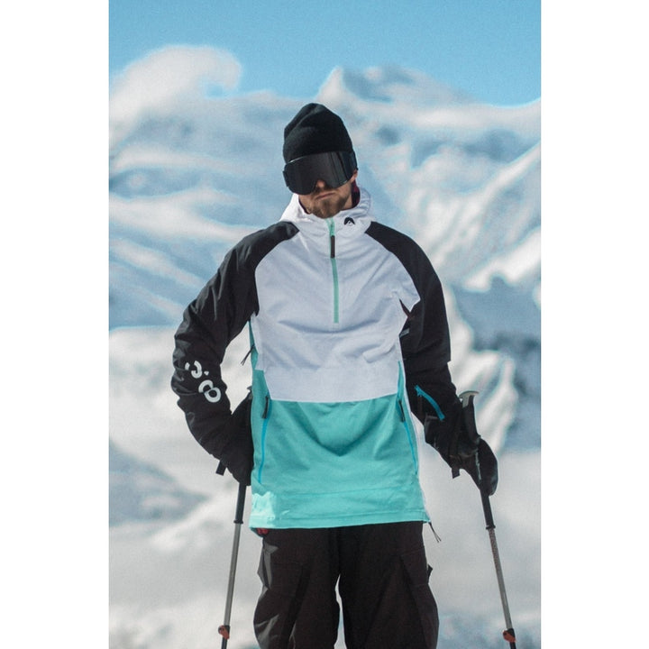 The OOSC Snow Park Overhead Snowboard Jacket is built from the finest recycled polyester in the world and has a 10,000mm waterproof rating and topped with a ZERO carbon durable water repellent to keep you dry, warm and comfortable whatever conditions you're riding in. It also has a removable powder skirt for the deep pow days!