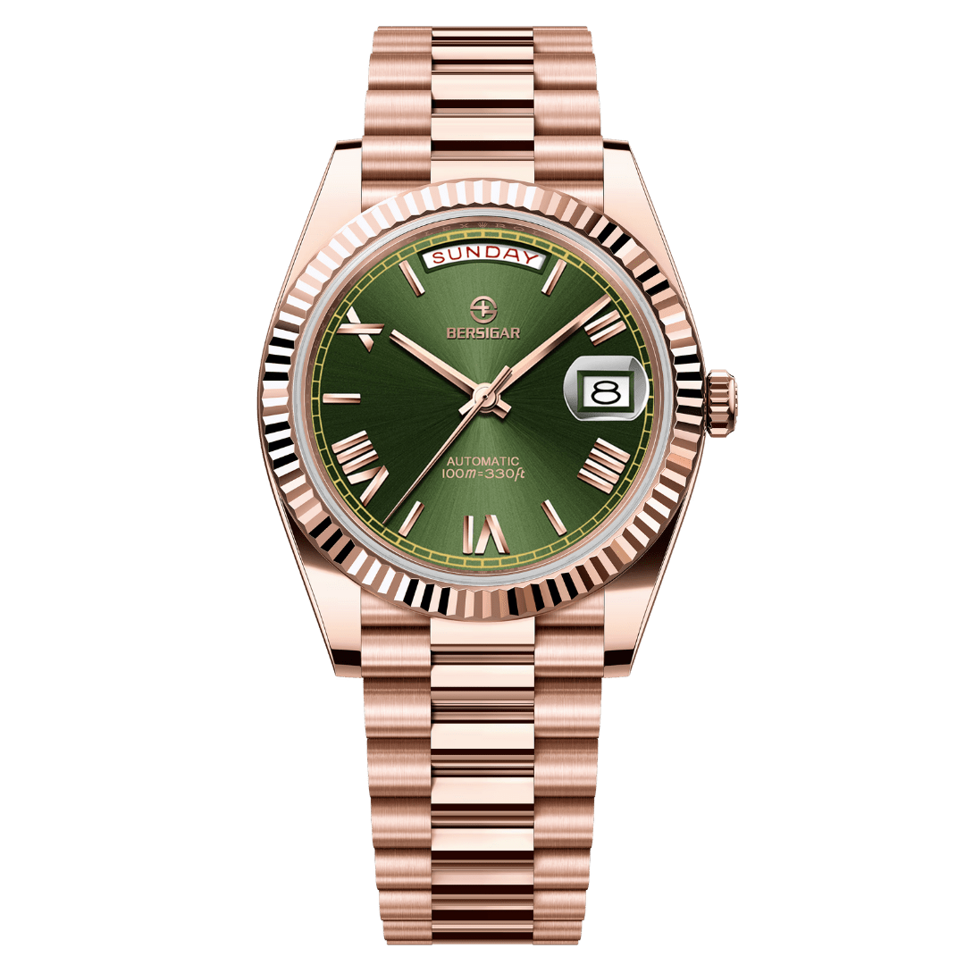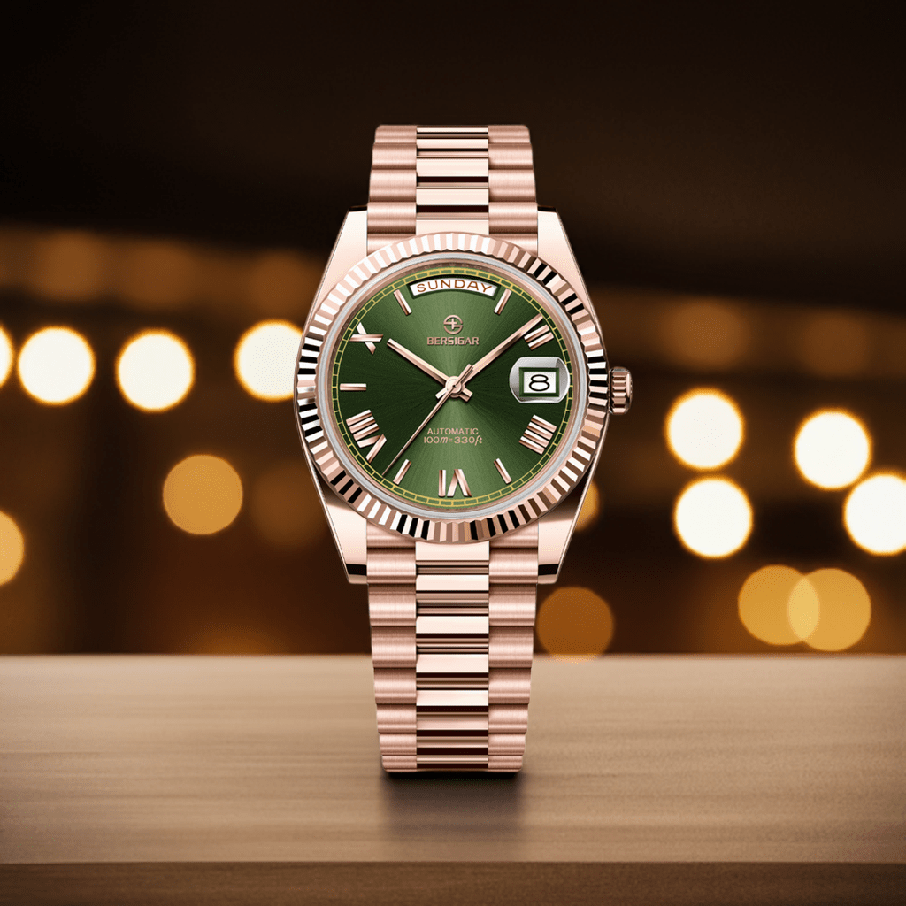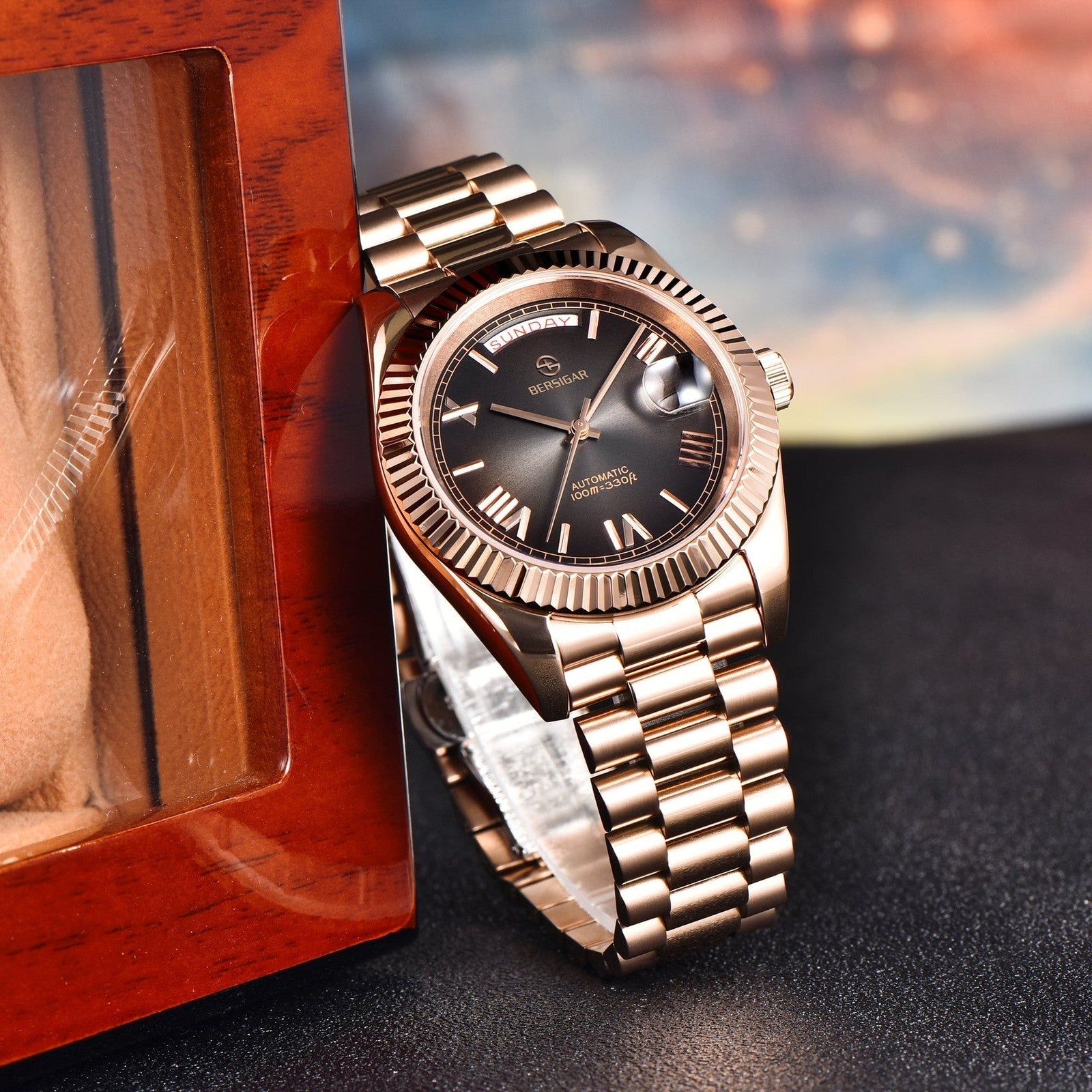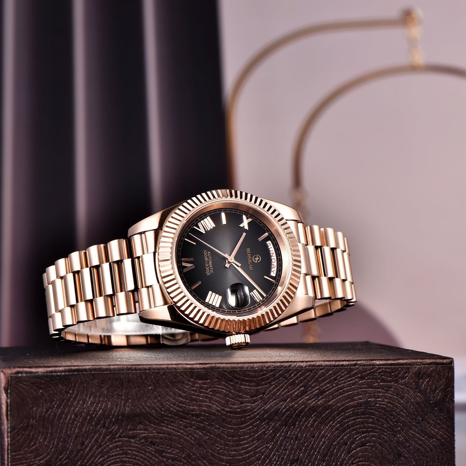 Bersigar Luxaura 1783 Premium materials and casual design, Sapphire dial window with AR coating, stainless steel construction with screw-down crown, solid case back, solid and flexible watchband with a classic fold-over clasp