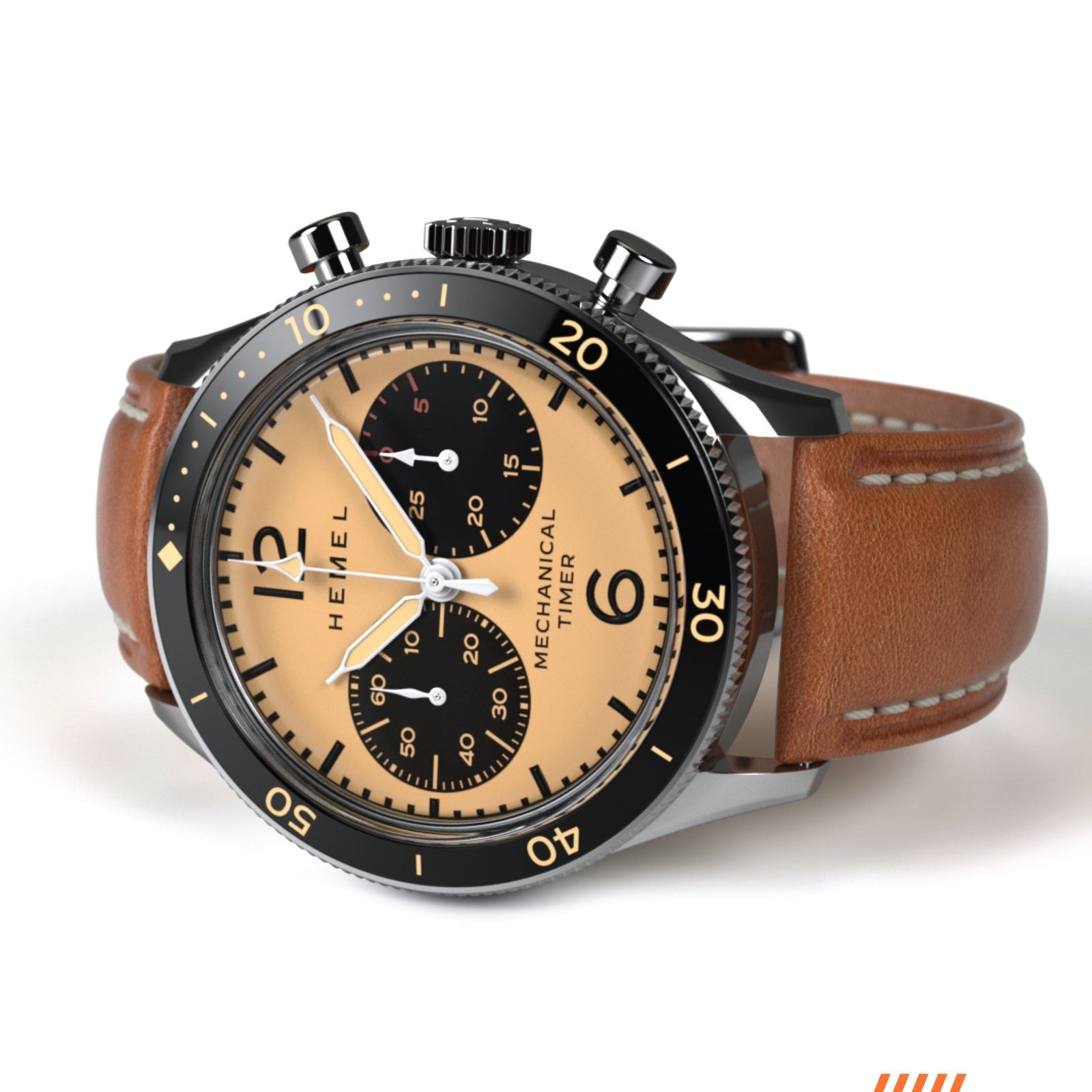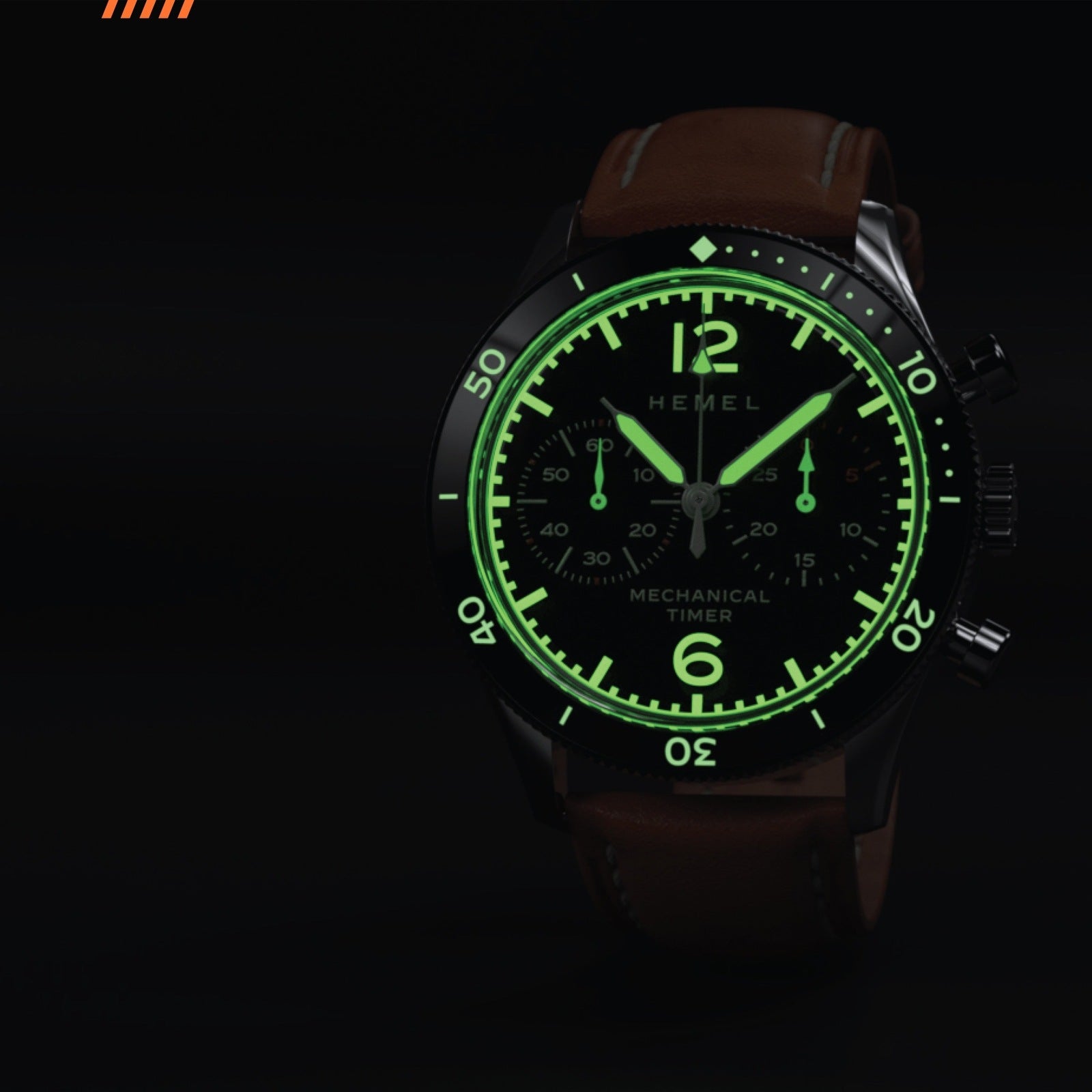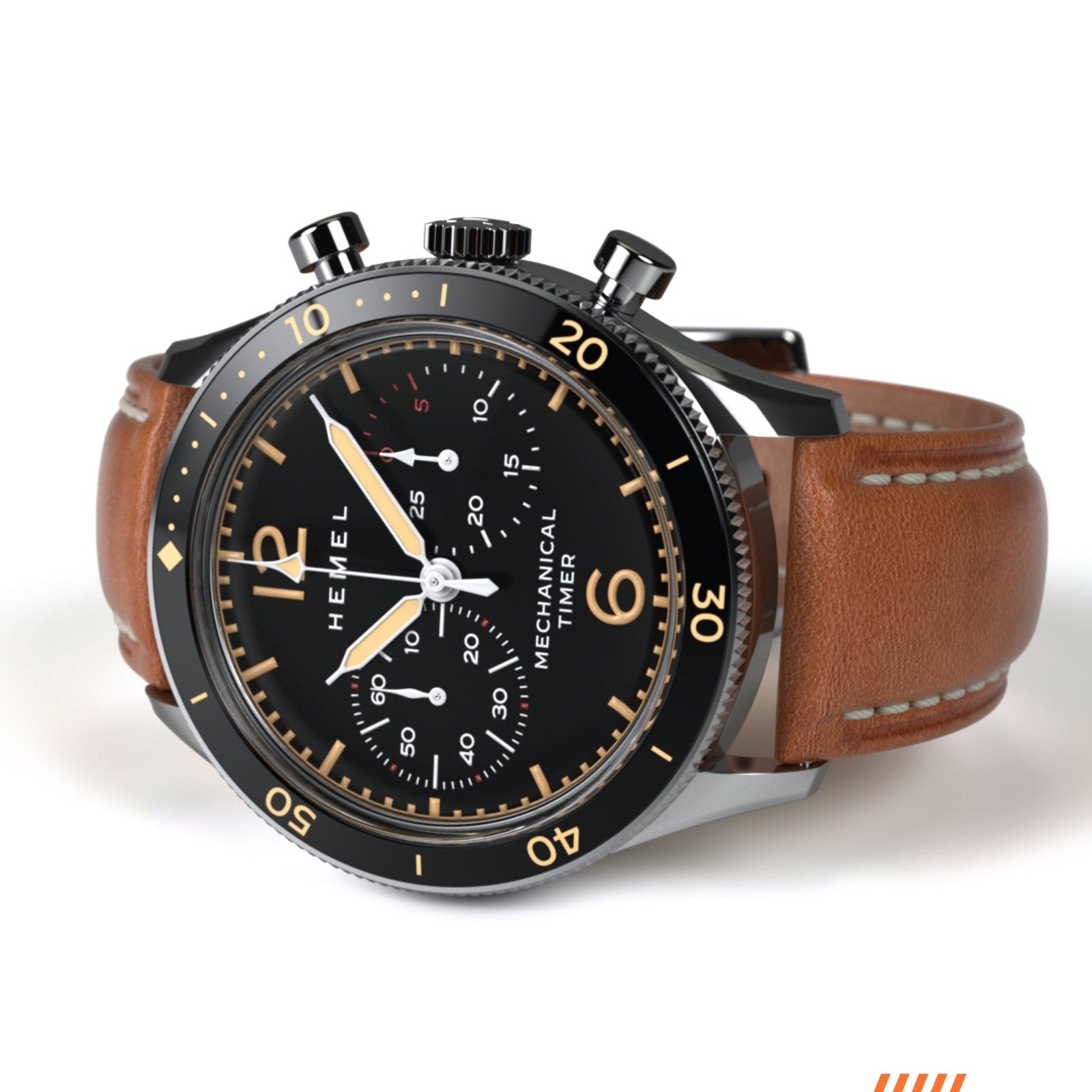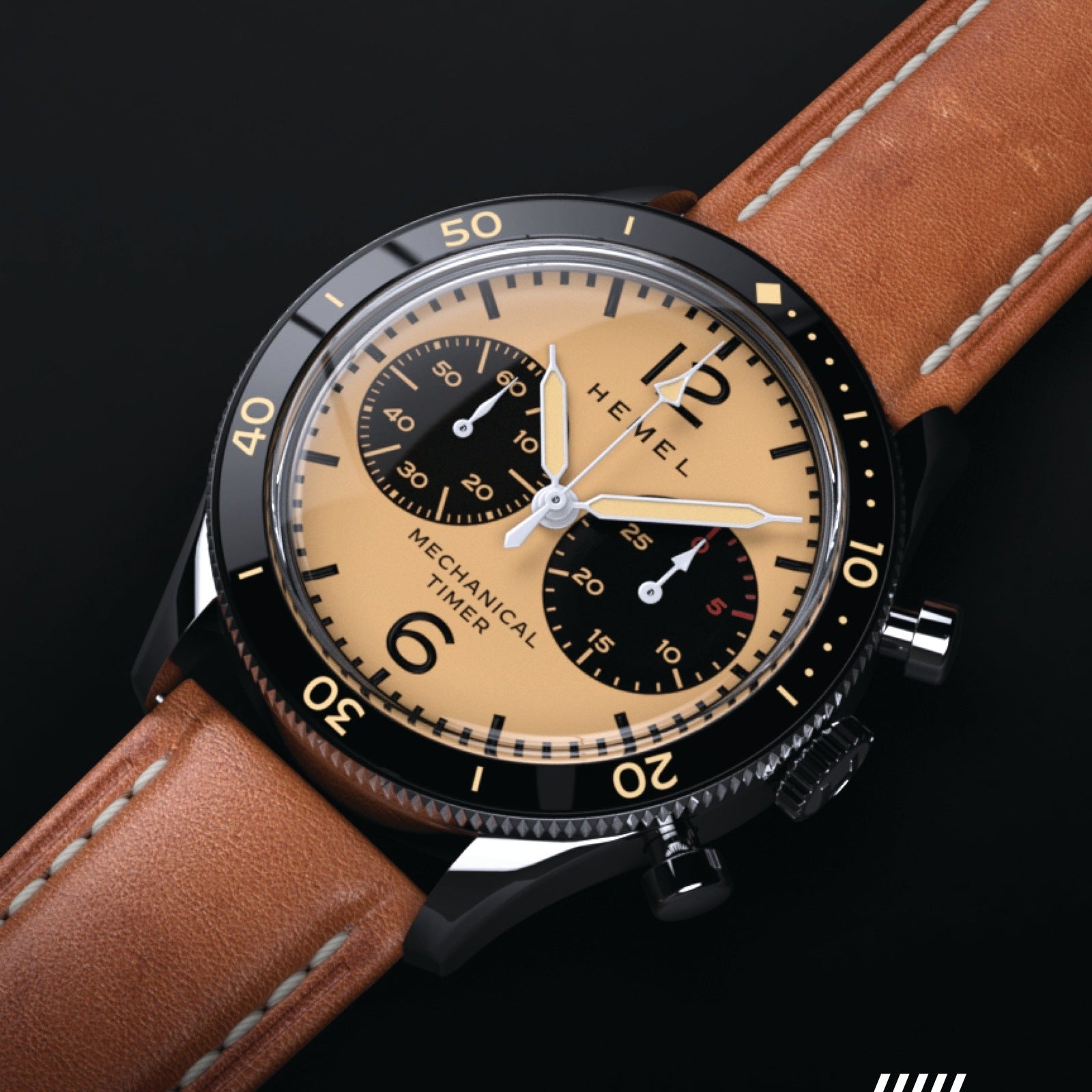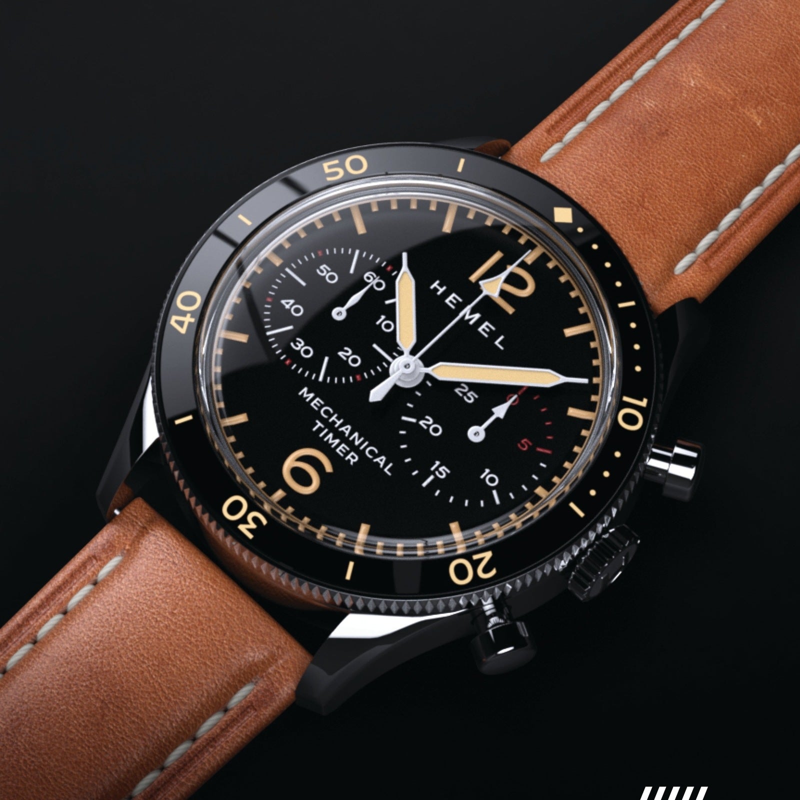 Our newest hand winding chronograph provides a more open aesthetic to our timeless piano black dial. Simplified markers make room for larger subdials to emphasize the timing capabilities of this piece. Piston pushers and a double signed buckle compliment the flexible Italian leather strap, making this chrono ready for all your adventures.