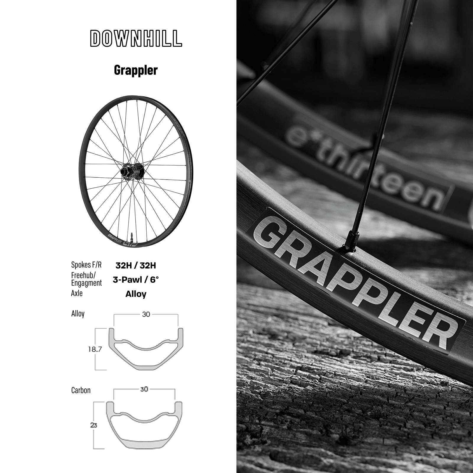 The Grappler Race Alloy Downhill Wheels are engineered specifically for the rigors of bike park riding and gravity racing. Refined over multiple World Cup Downhill racing seasons, they are up to 228% stronger than earlier LG1 Plus models and offer the perfect balance between responsiveness, precision, comfort, and durability.