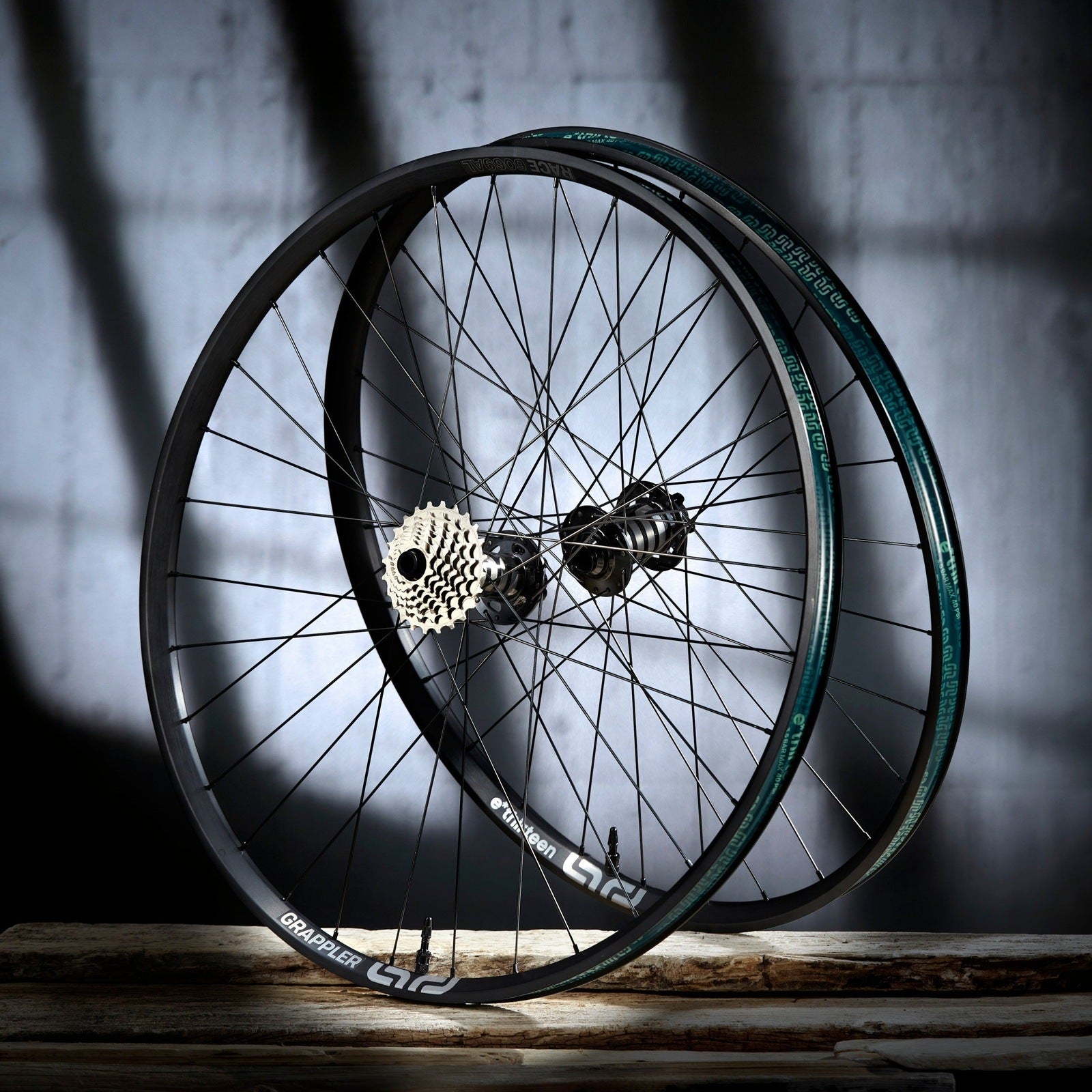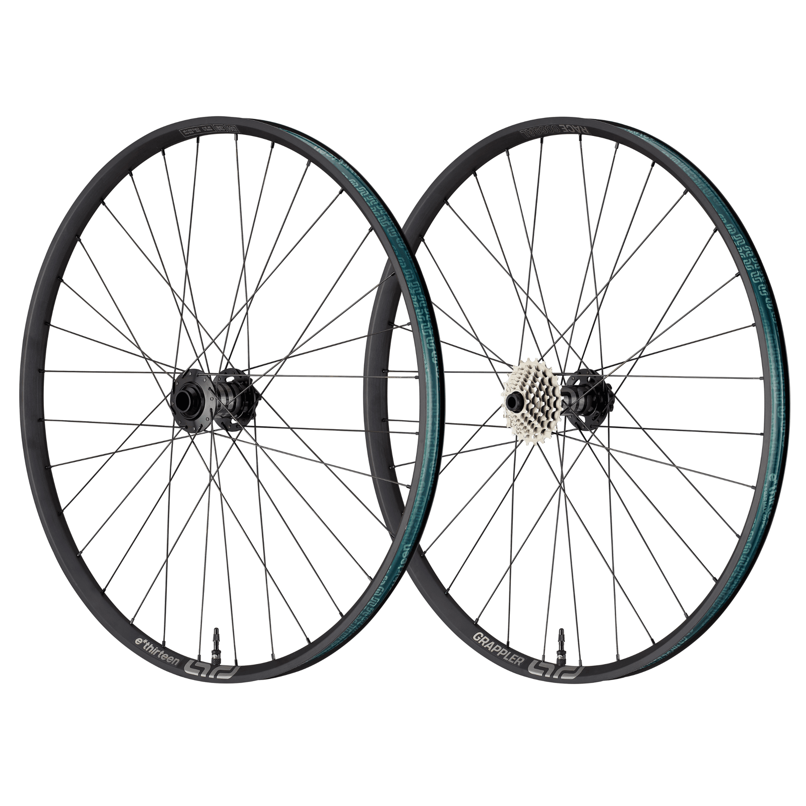 The Grappler DH rear hub features a unique integrated 7-speed 9-24T cassette/ driver, exclusively engineered for e*thirteen's downhill rear wheels. This innovative system has a compact design that reduces weight and parts compared to a standard rear hub. It also creates a more robust wheel architecture through a broader spoke bracing angle. This allows the wheel to have equal spoke lengths and tension on both sides for more consistent handling and better wheel durability.