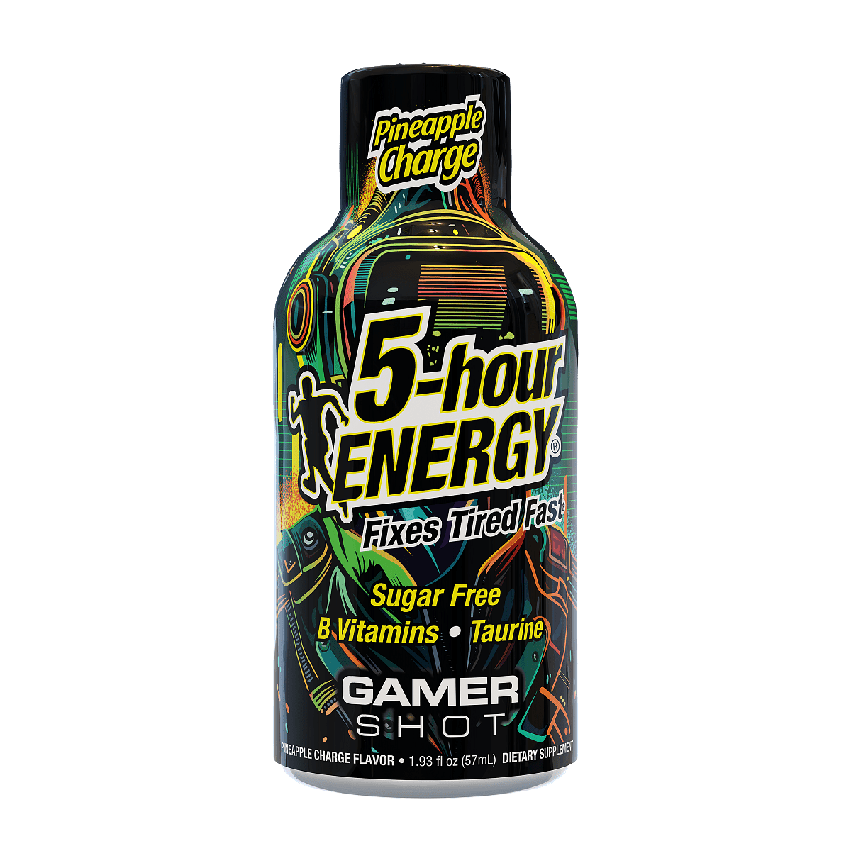 Now’s the time to frag harder and raid longer. Outplay your rivals and level up your gaming stamina with a Pineapple Charge 5-hour ENERGY gamer shot. It’s your secret weapon. Pineapple Charge is an electrifying explosion of tantalizing, tropical pineapple flavor mixed with the taste of seasoned, spicy ginger. It has a high-voltage mix of B vitamins, nutrients and 230mg of caffeine. It will excite your mouth while instantly delivering a critical hit on fatigue.