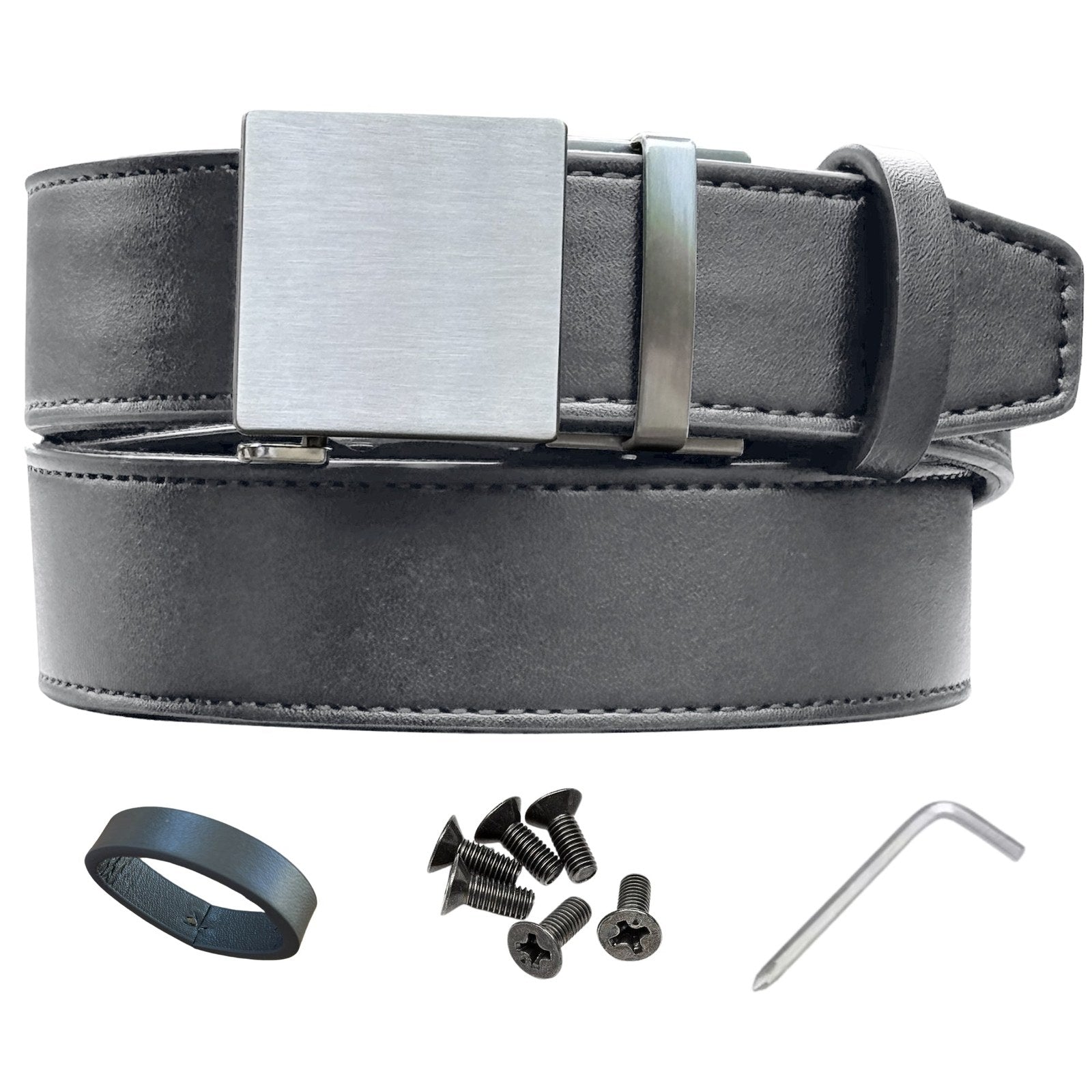 Concealed carry belt for men, ideal for both men and women, feature a durable stainless steel buckle with ratchet fit adjustment technology. This leather gun belt features a stainless steel buckle for a dressier look and fewer scratches. It is 1.75" wide, with a buckle width designed for a perfect fit. The belt includes durable stainless steel pins, larger at 2.5mm in diameter, ensuring long-lasting strength and reliability.