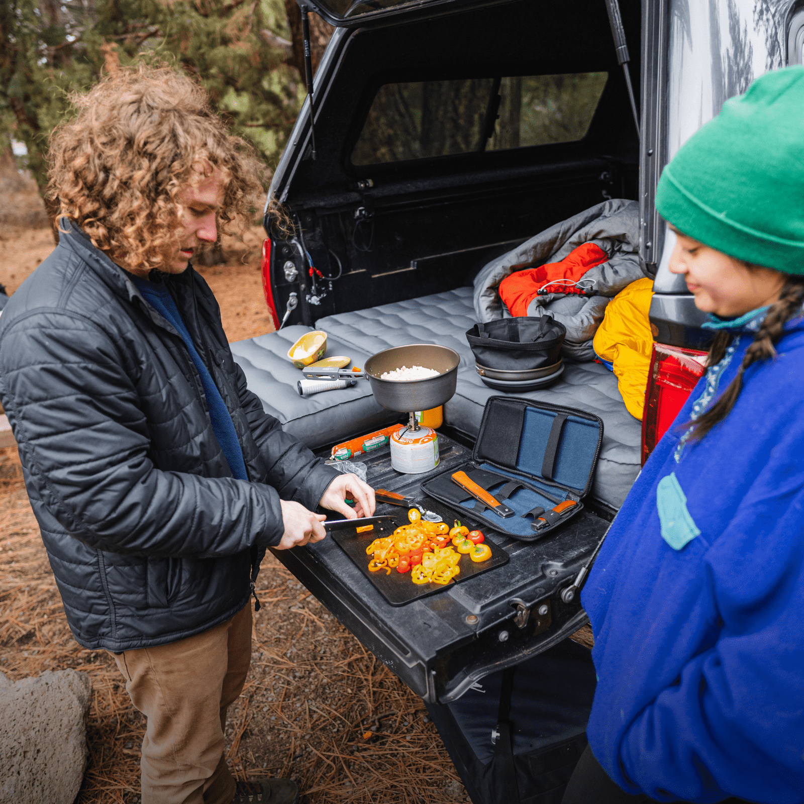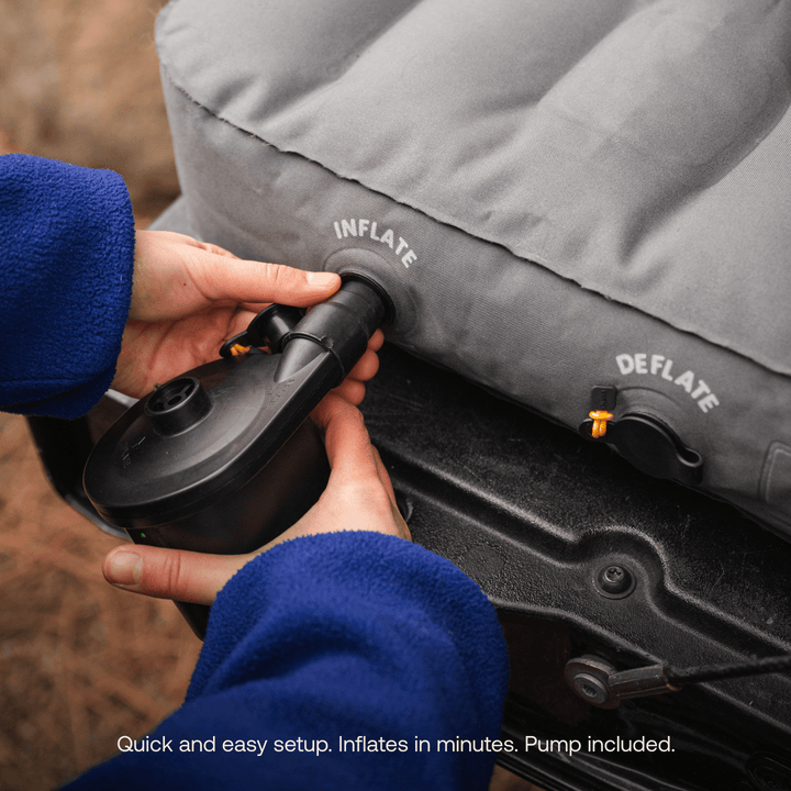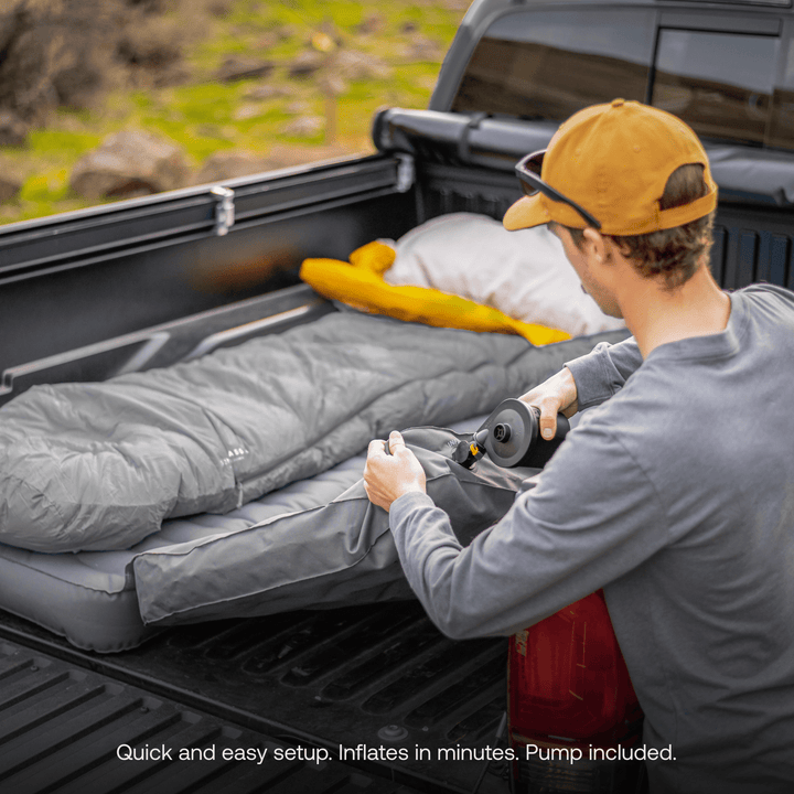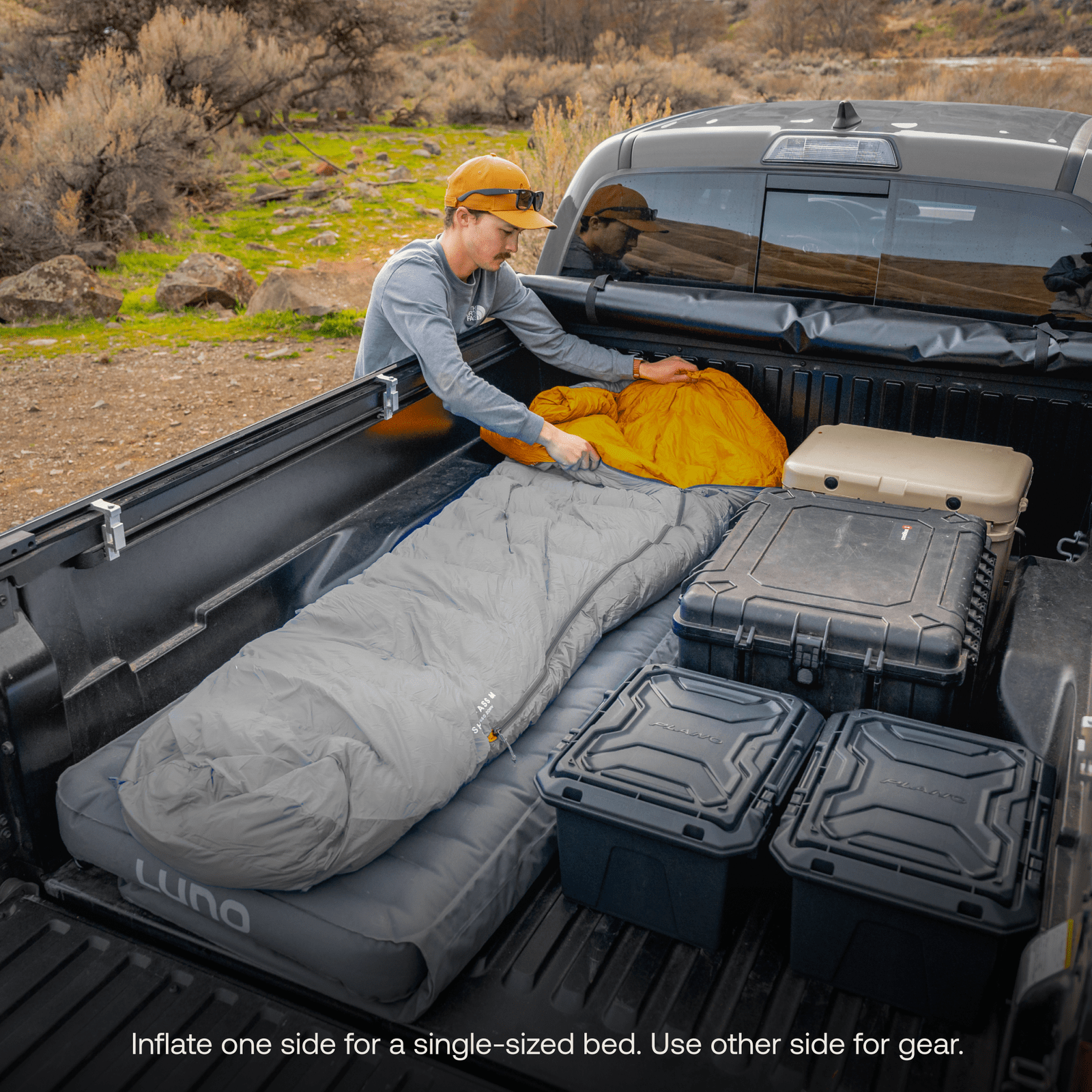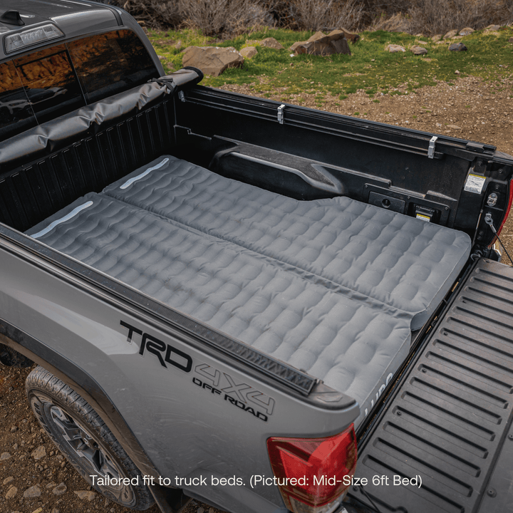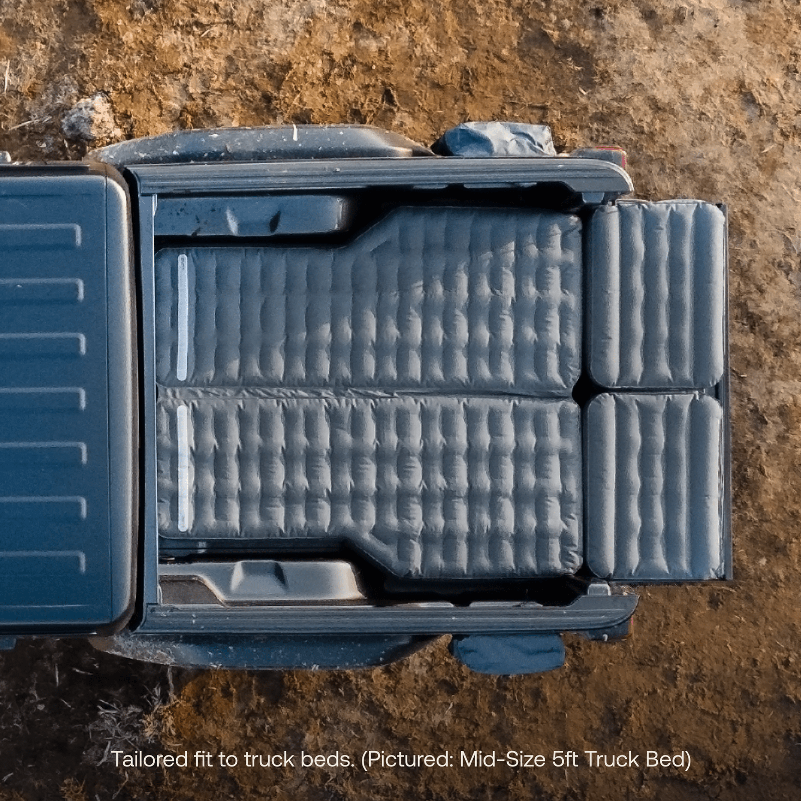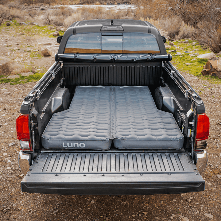 The Luno AIR Truck Bed Mattress is easy to set up and a dream to snooze on. The ultra-tough, ultra-comfy, AIR Truck Bed Mattress will revolutionize your life on the dirt road. This mattress isn’t a rectangle for a reason. Our engineers factor wheel wells into the design, ensuring an optimized and comfortable sleeping area in most trucks.