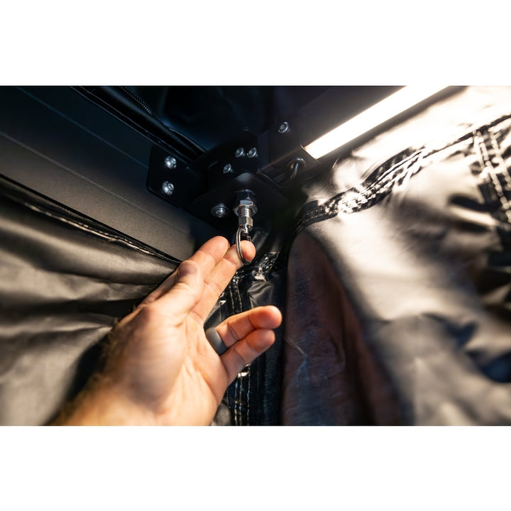 Awn-X Annex Room for Evolution rooftop tents by Freespirit Recreation is designed for complete coverage in and out of your RTT. At just 24lbs, this annex room can be used for extra sleeping space, a changing area, privacy room, space for the dogs, etc. Integrated fabric installed on the roof of your Evo rooftop tent attaches to the deployed arms on your Awn-X Annex room.