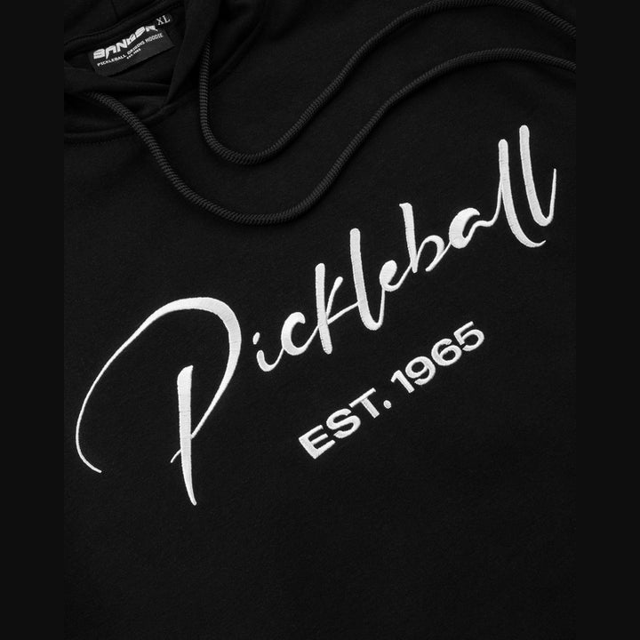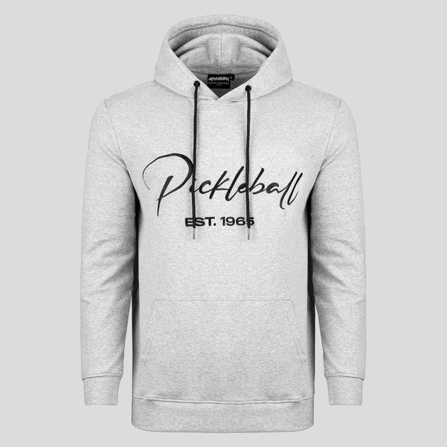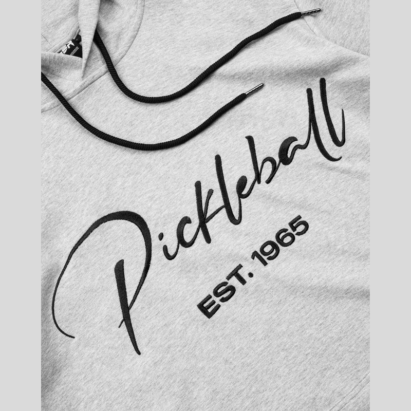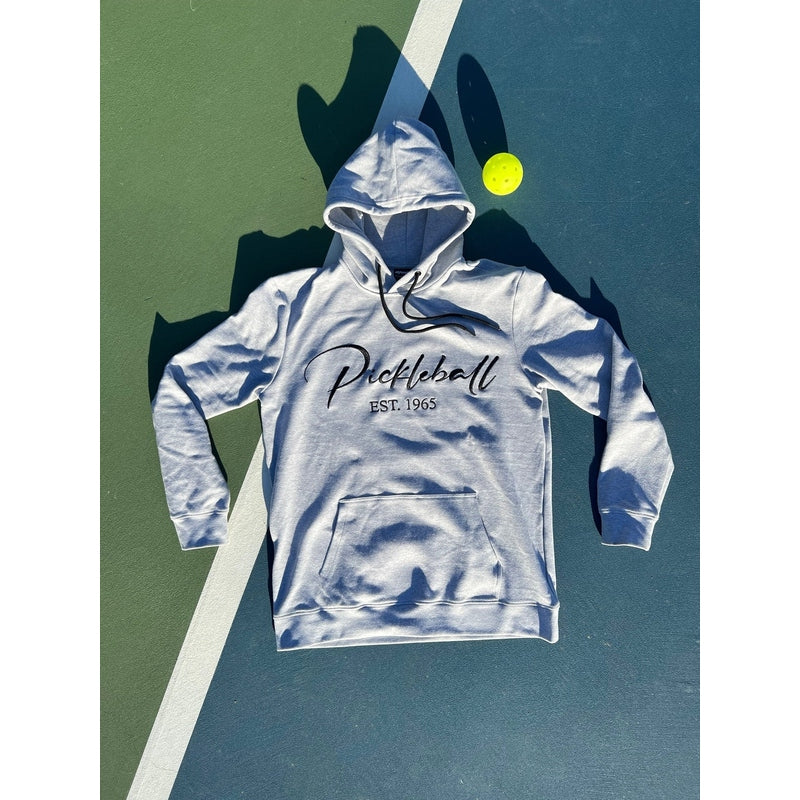 Made from an incredibly soft blend of cotton and spandex, and boasting an elegant embroidered "Pickleball Est. 1965" on the front, this hoodie can be paired well with jeans on a night out.