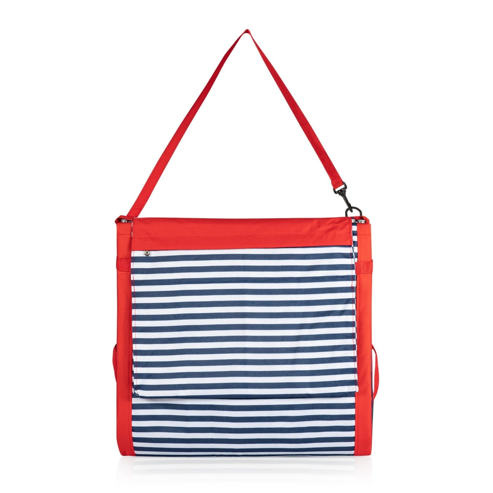 The Beachcomber Beach Mat, a lightweight and portable beach lounger with a fully-padded and adjustable backrest set on an inner steel frame, is the perfect compromise between a beach chair and a towel. Ideal for the sunbather who wants to lay out without missing all the action! A large zippered pocket holds your phone and sunglasses, and the shoulder strap makes this beach lounge chair easy to carry anywhere.