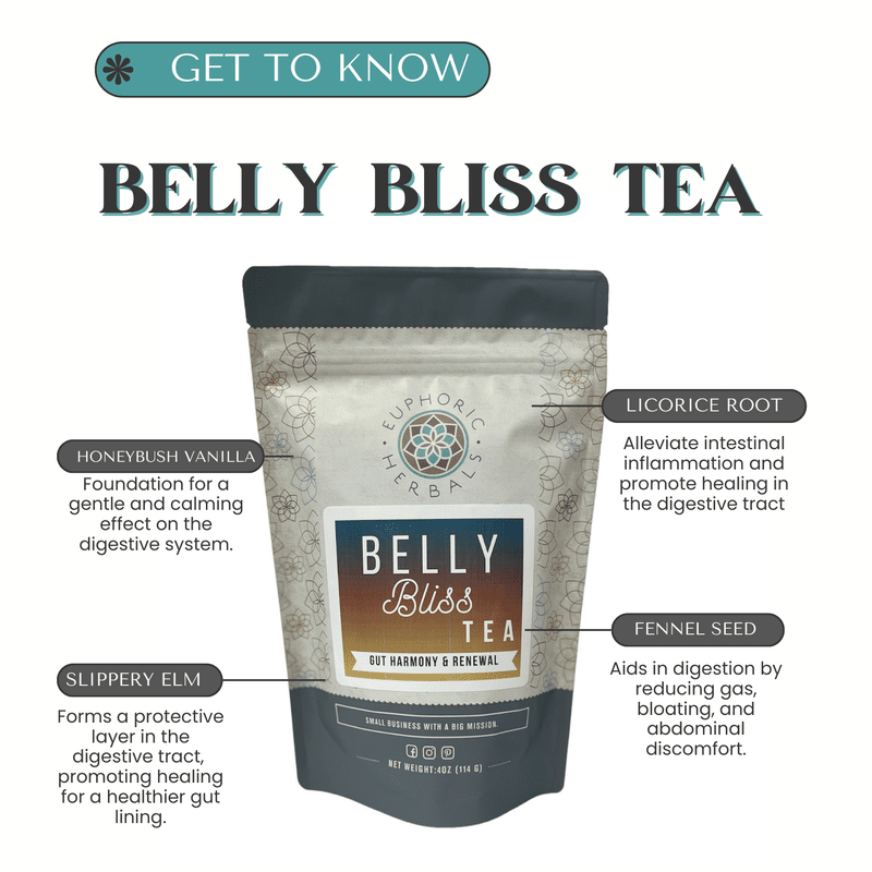 Belly Bliss Tea is a journey towards inner balance and harmony. Whether you're seeking relief from occasional digestive discomfort or simply looking to support your gut's natural balance, this curated blend is here to harmonize and renew your digestive wellness, one delicious cup at a time.