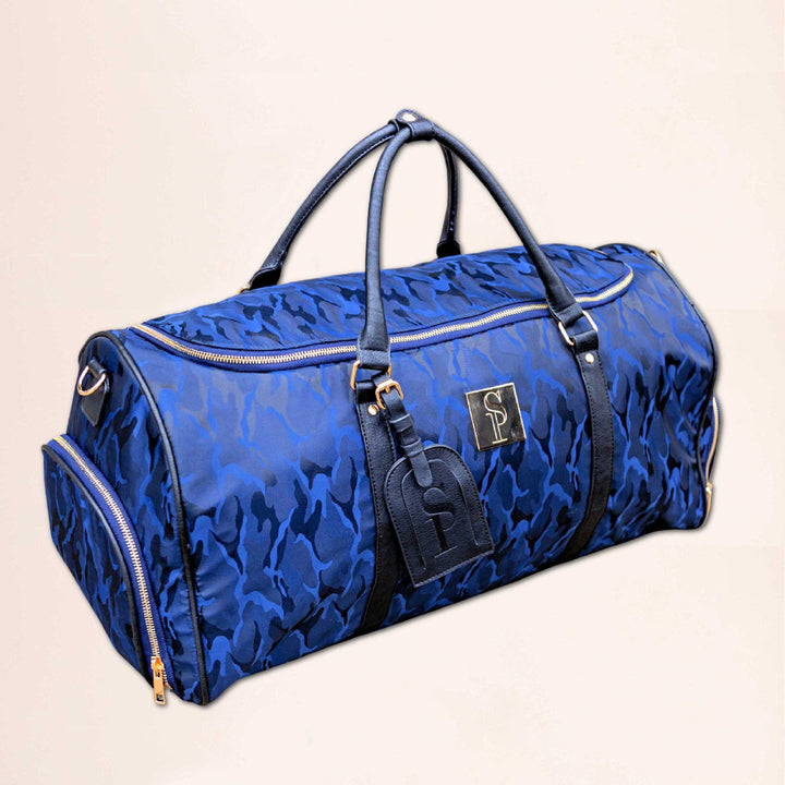 Our Blue Camo Weekender Duffle Bag has become many go-to travel bags when want a luxury and stylish overnight bag that can carry their clothes, shoes, socks/underwear and more!
