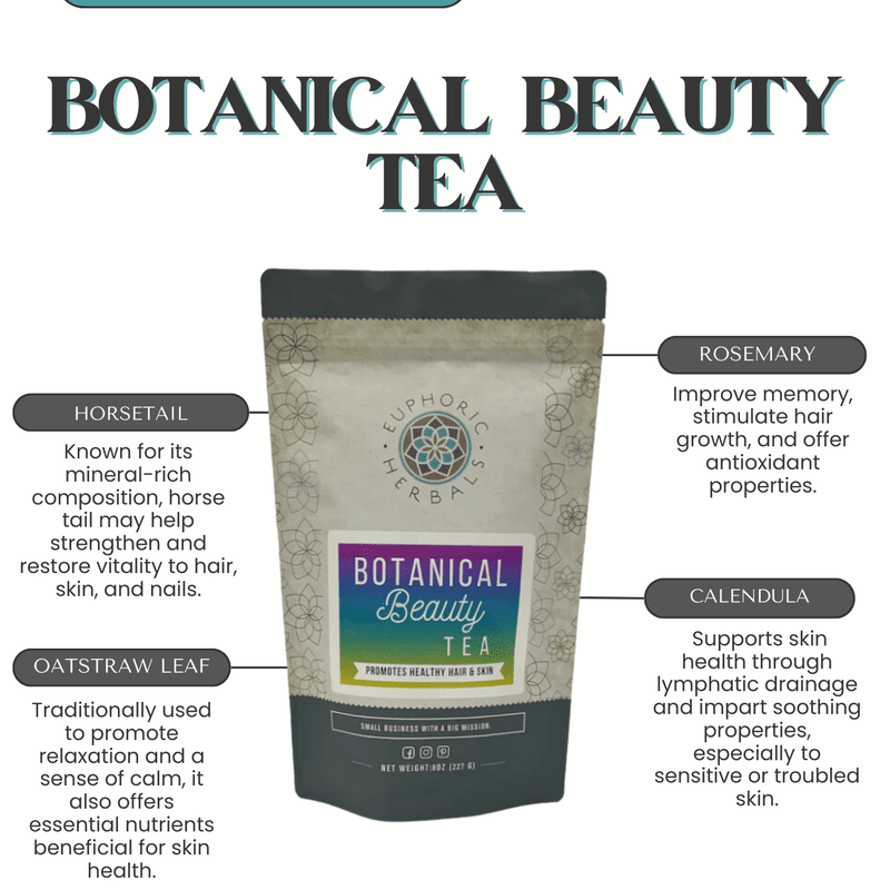 Horse Tail (Shavegrass): Known for its mineral-rich composition, horse tail may help strengthen and restore vitality to hair, skin, and nails.