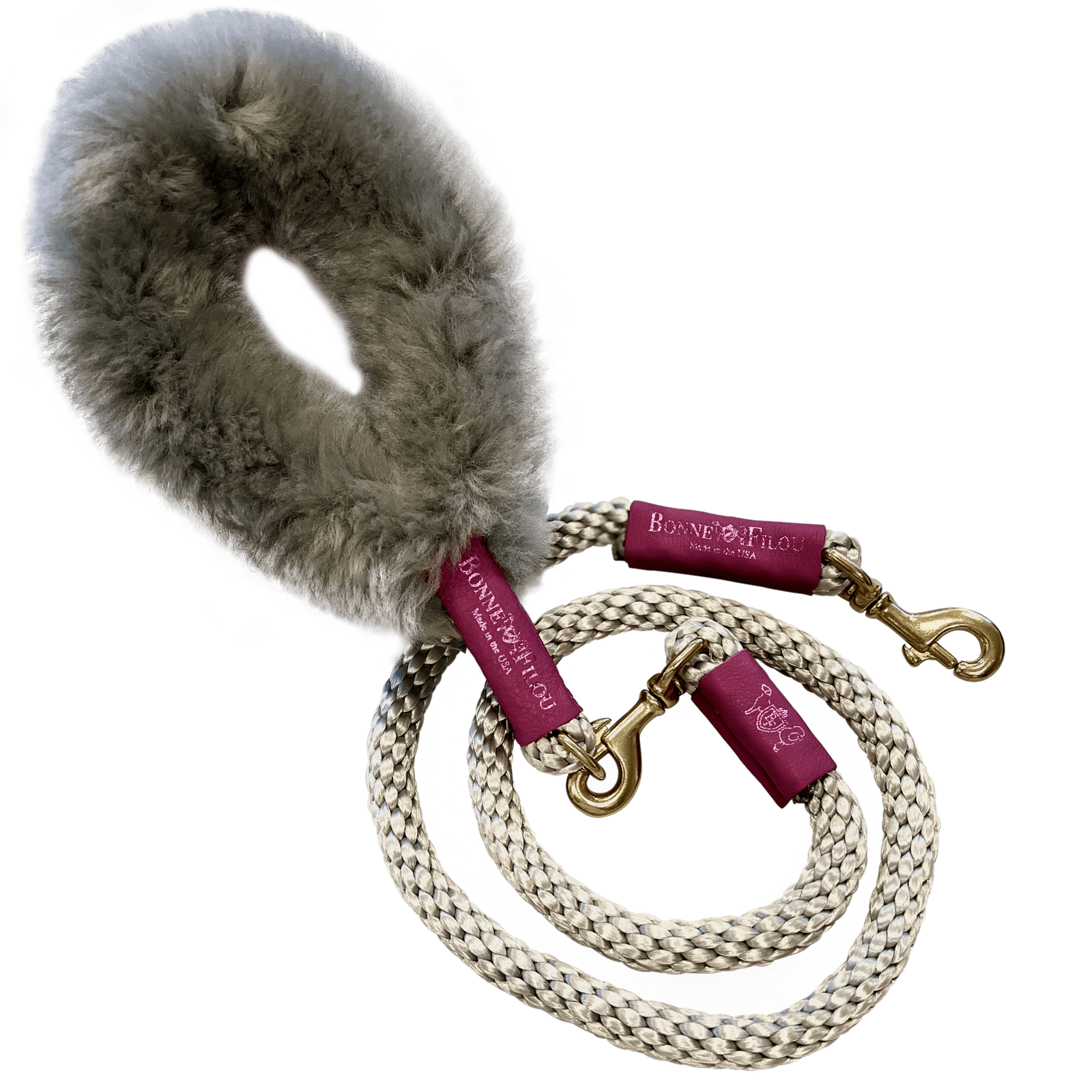 Our shearling fur grip + rope leash bundle is uniquely chic & fun, composed of: