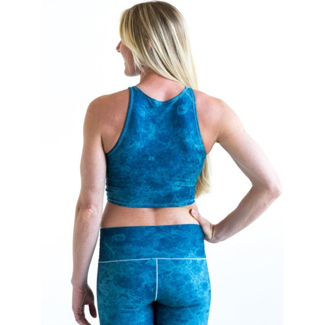 - We handcraft our yoga crops using fabric made from recycled water bottles. Polyethylene terephthalate (PET) water bottles, to be specific, which is a form of polyester.