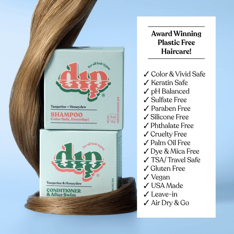 The Dip conditioner bar is incredible as a leave in and for air-drying your hair, but if you're a daily heat-styler, we have a heat protectant also built in. Style away! Beach hair to ballroom, we got you covered with one bar.