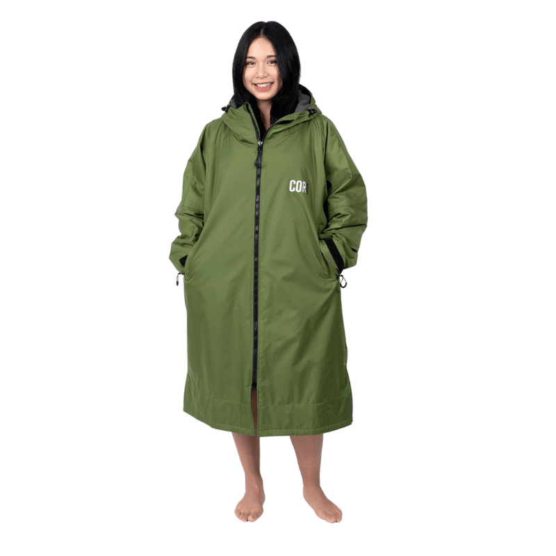 • The COR Surf Swim Jacket has an oversize design so you can wear over your wetsuit or clothes and remain comfortable