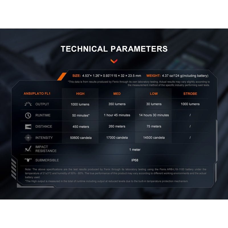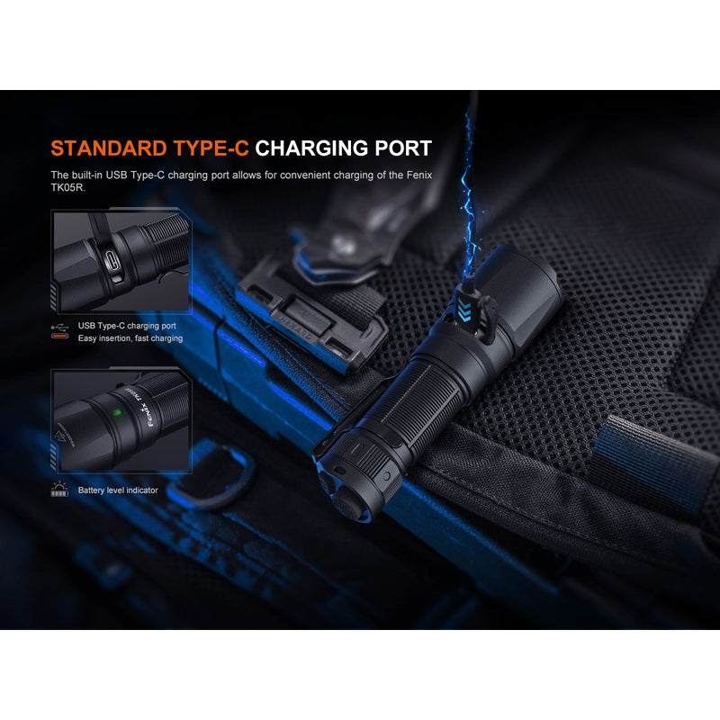 The Fenix TK05R is a pocket-sized powerhouse, delivering an impressive 1000-lumen maximum output and a remarkable 450-meter beam distance. Designed to be your top choice for both EDC and tactical use, this flashlight features the compact design you'd expect from your everyday carry but also tactical features such as a dual tail switch for easy operation and an instant strobe function for emergencies. It is USB-C rechargeable, offering up to 14.5 hours of runtime and includes a rechargeable ARB-L18-1100 battery. The compact design ensures easy carry, while its IP68-rated waterproof and 1-meter drop impact resistance provide robust reliability in harsh conditions. With patented APF technology and intelligent overheat protection, the TK05R is built to perform safely and efficiently, making it an essential tool for outdoor enthusiasts and professionals alike.