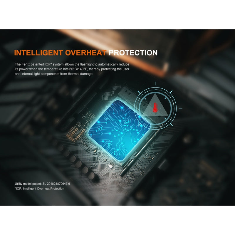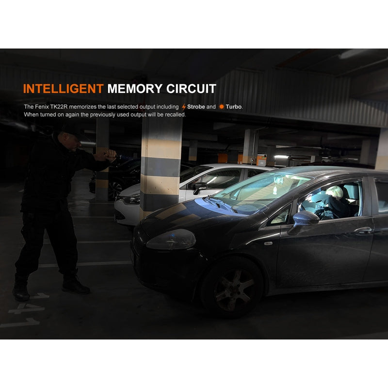 The Fenix TK22R features a 3200 lumen maximum output, seamless transition between tactical and duty modes, and the Patented Flexi-sensa Control Switch for intuitive operation. Its hidden USB-C charging port ensures swift recharging, complemented by the robust 5000mAh included battery. This flashlight boasts durability with tungsten steel alloy striking tips and double springs, optimized for tactical use. Innovative APF technology ensures consistent brightness, while intelligent overheat protection keeps performance optimal. Even with its charging port exposed, its resilience shines through, maintaining a waterproof rating of IP68.