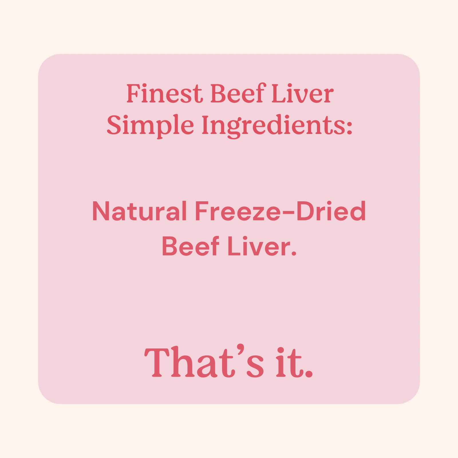 Single-ingredient, freeze-dried beef liver, can be used as a treat or as a food topper. Our finest beef liver treats are sourced from the Midwest. All of our animals NEVER have any added hormones, GMO, or antibiotics. 3.6 kcal/g. 2.7oz tube.