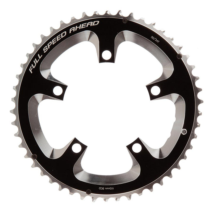 FSA, 50T, 10/11sp., BCD: 110mm, 5 Bolts, Super Road, Outer Chainring, For Double, Aluminum, Black, 371-0250A