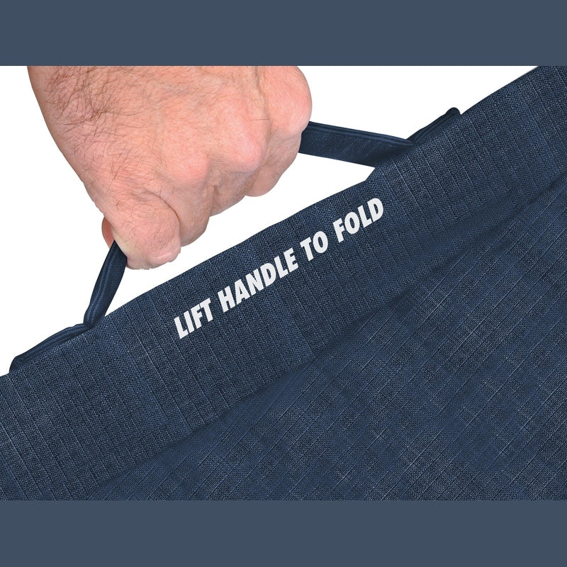 Quality Construction: Constructed from sturdy powder-coated steel, the foldable chair frame supports up to 250 pounds and includes padded armrests, a mesh backrest, and a multi-use fold-out side table