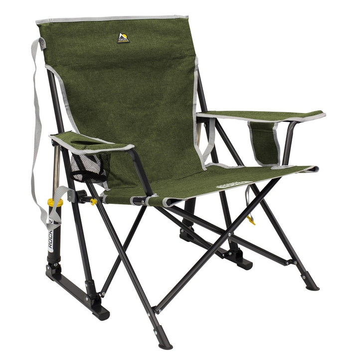Outdoor Rocking Chair: Equipped with a slightly lower seat and a mid-sized design, this portable folding chair quickly and easily folds up for simple storage and transportation.