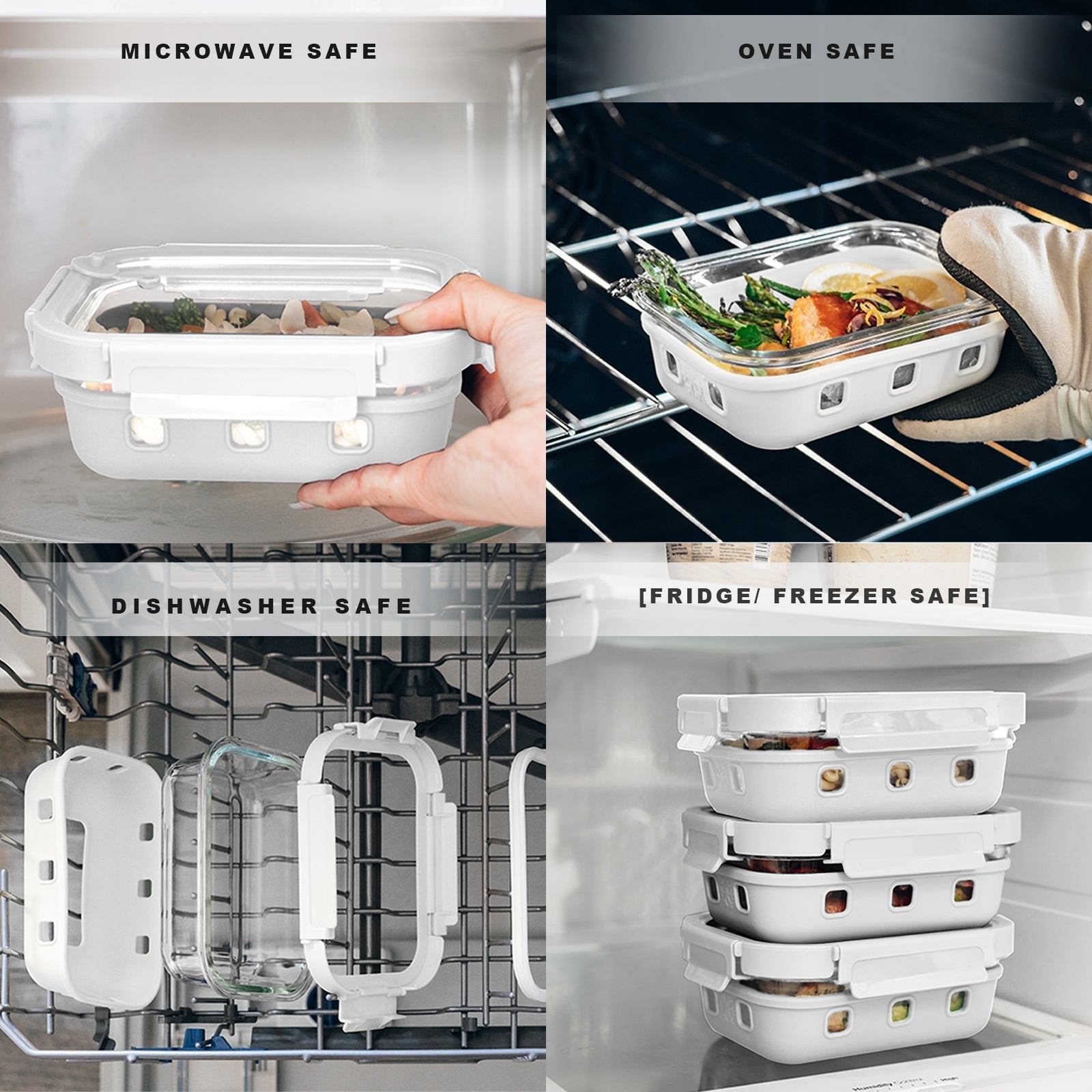 Embrace a blend of sophistication and practicality with Genicook's 4-Piece Glass Container Set, your go-to solution for seamless food prep and storage. Each container is crafted from robust borosilicate glass and features a secure glass lid with a protective silicone sleeve.