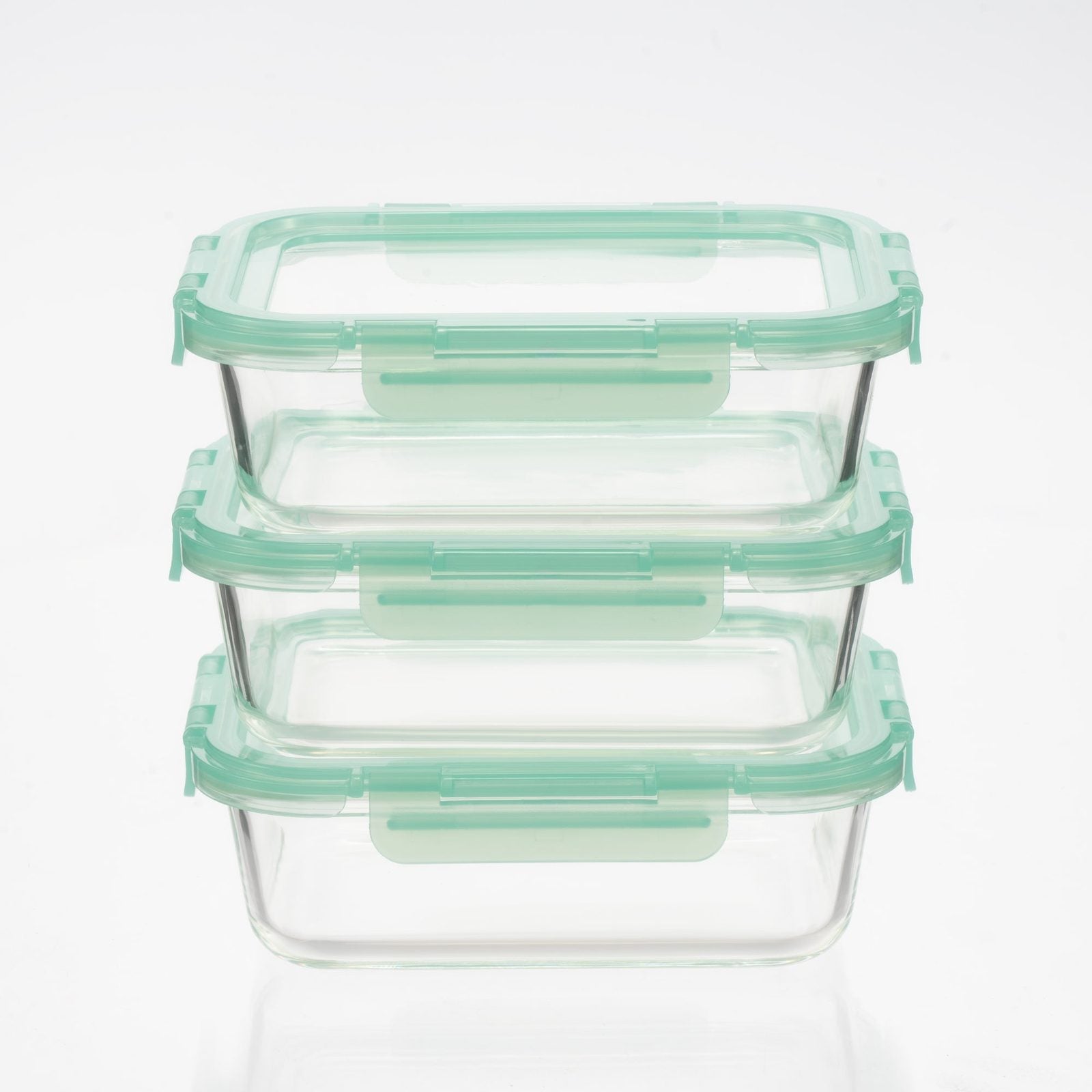 Set Includes: 3 Glass Containers + 3 Teal Silicone Lids
