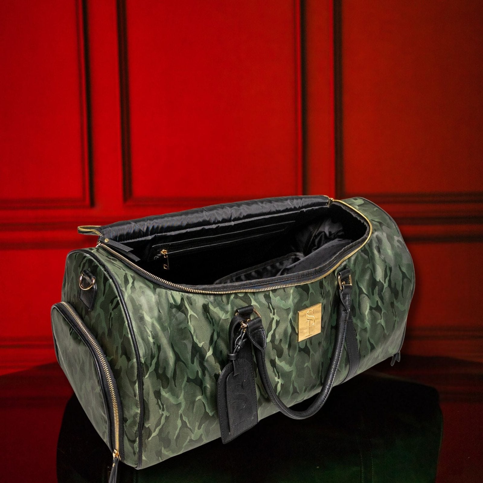 Our Green Camo Weekender Duffle Bag has become manies go-to travel bag when wanting a luxury and stylish overnight bag that can carry their clothes, shoes, socks/underwear and more!