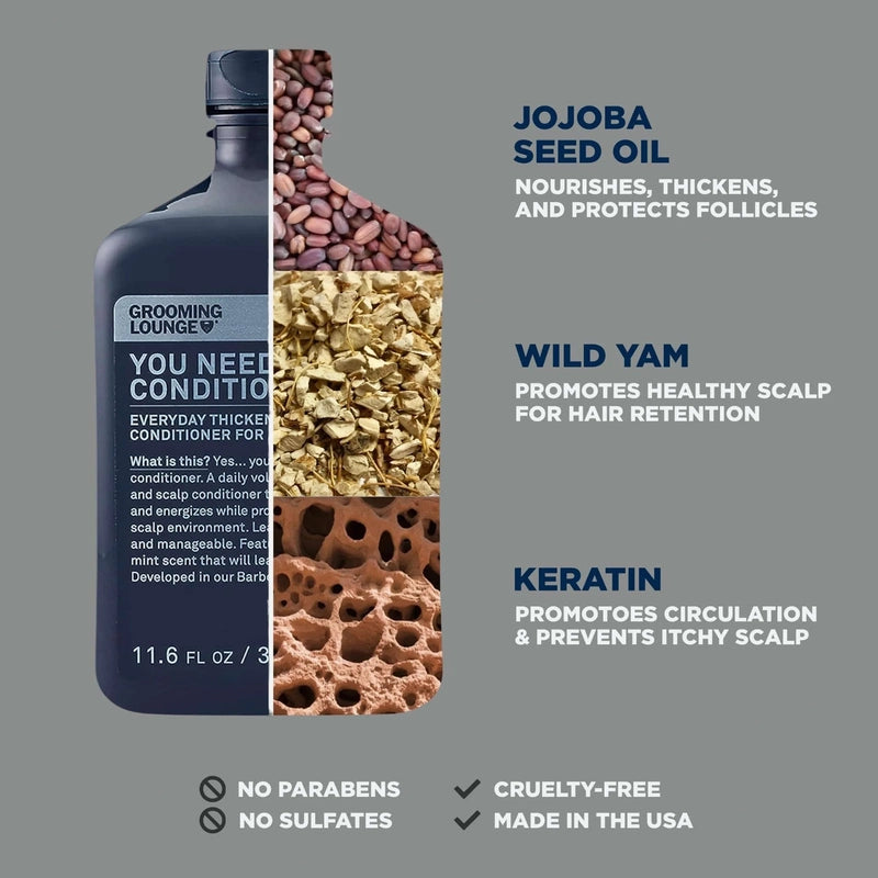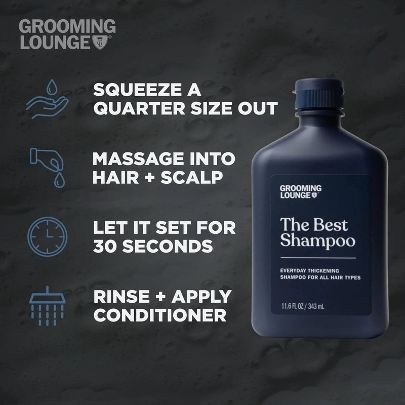 The best daily-use shampoo... period. A daily cleanser that gently removes residue to promote healthy hair and a great scalp environment. Stimulating peppermint scent smells great and imparts just-right tingle to hair and scalps. Contains pretty much anything that will gently clean hair and possibly help a guy hold onto his precious locks. Developed in our Barbershop by real Barbers and other smart humans. Used and enjoyed dozens of times daily within this same shop. Sulfate and Paraben free. Vegan Friendly.