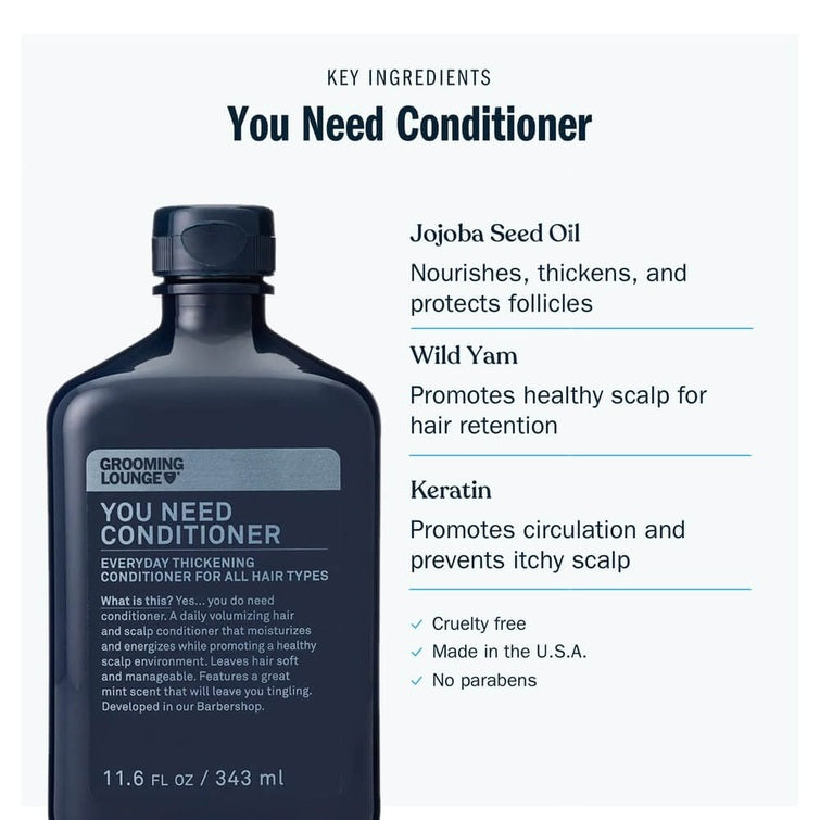 Yes... you do need conditioner. And this is the one you need. A daily volumizing hair and scalp conditioner that moisturizes and energizes while promoting a healthy scalp environment. Keeps hair soft and manageable and features a great mint scent that leaves scalps tingling. Adept at softening hair, untangling unwanted curls and leaving hair ready to be styled as desired. Developed in our Barbershop by real Barbers and other smart humans. Used and enjoyed dozens of times a day in our Barbershop. Sulfate & Paraben free.